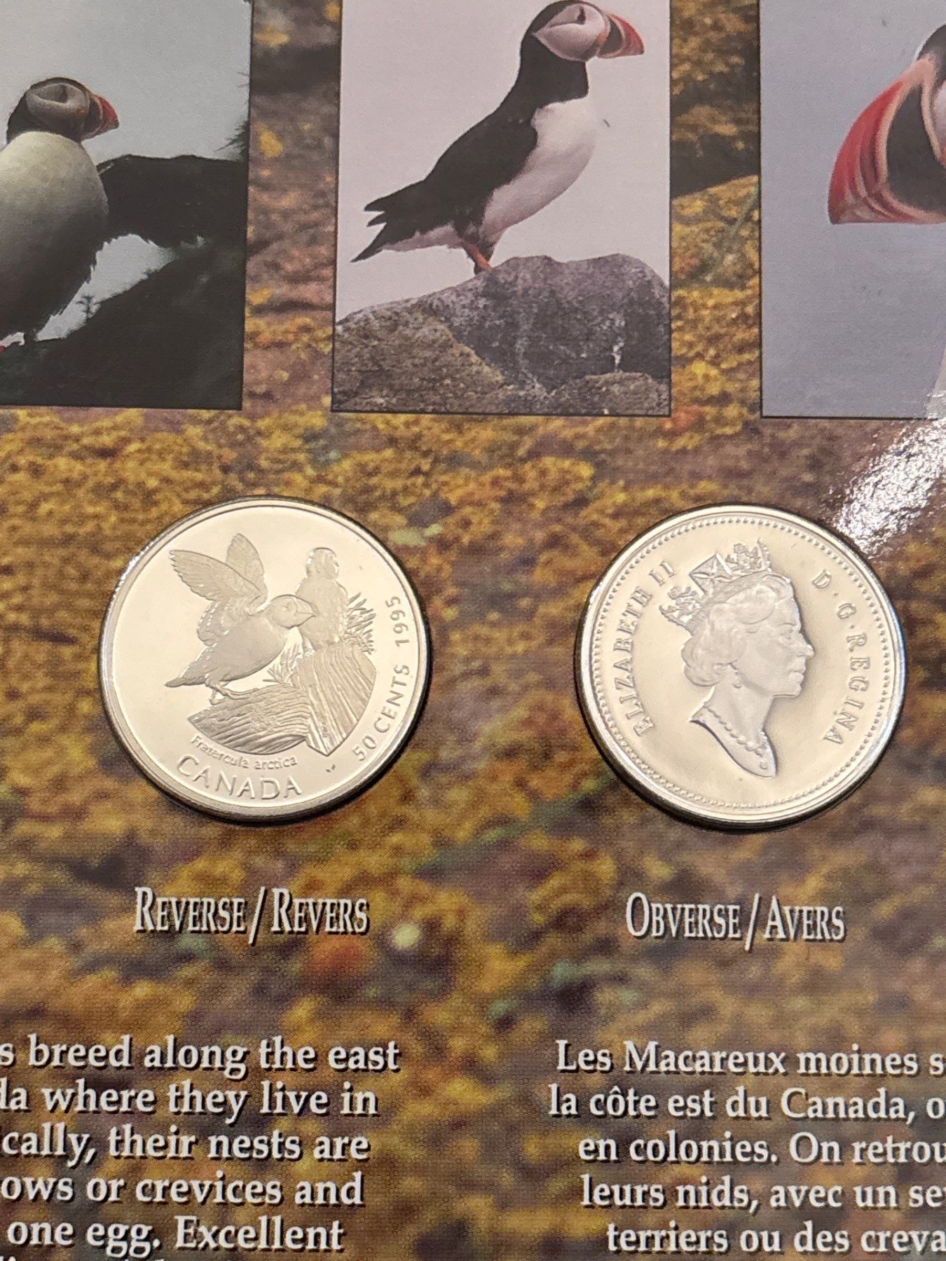 1995 Proof Silver 50 cent Birds of Canada Set Atlantic Puffin + Whooping Crane