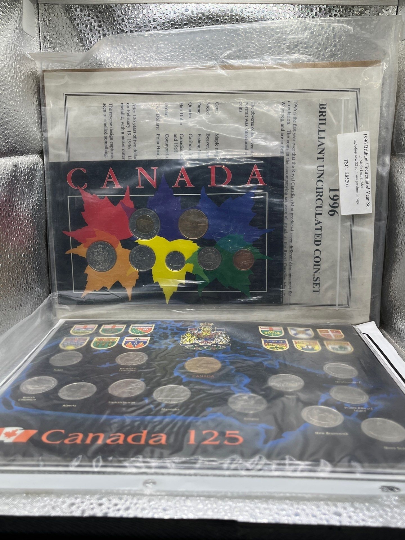 1996 Canadian Coin Set in Decorative Holder & Canada 125 Loonie & Quarter Set