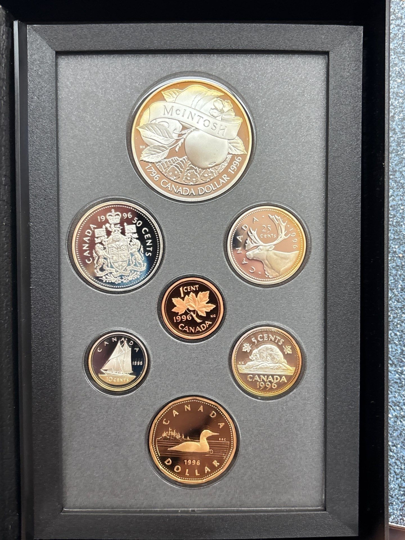1996 Canadian double dollar set with silver dollar 50 Cent piece 25 cent piece dime and nickel 48.125 g 925 silver