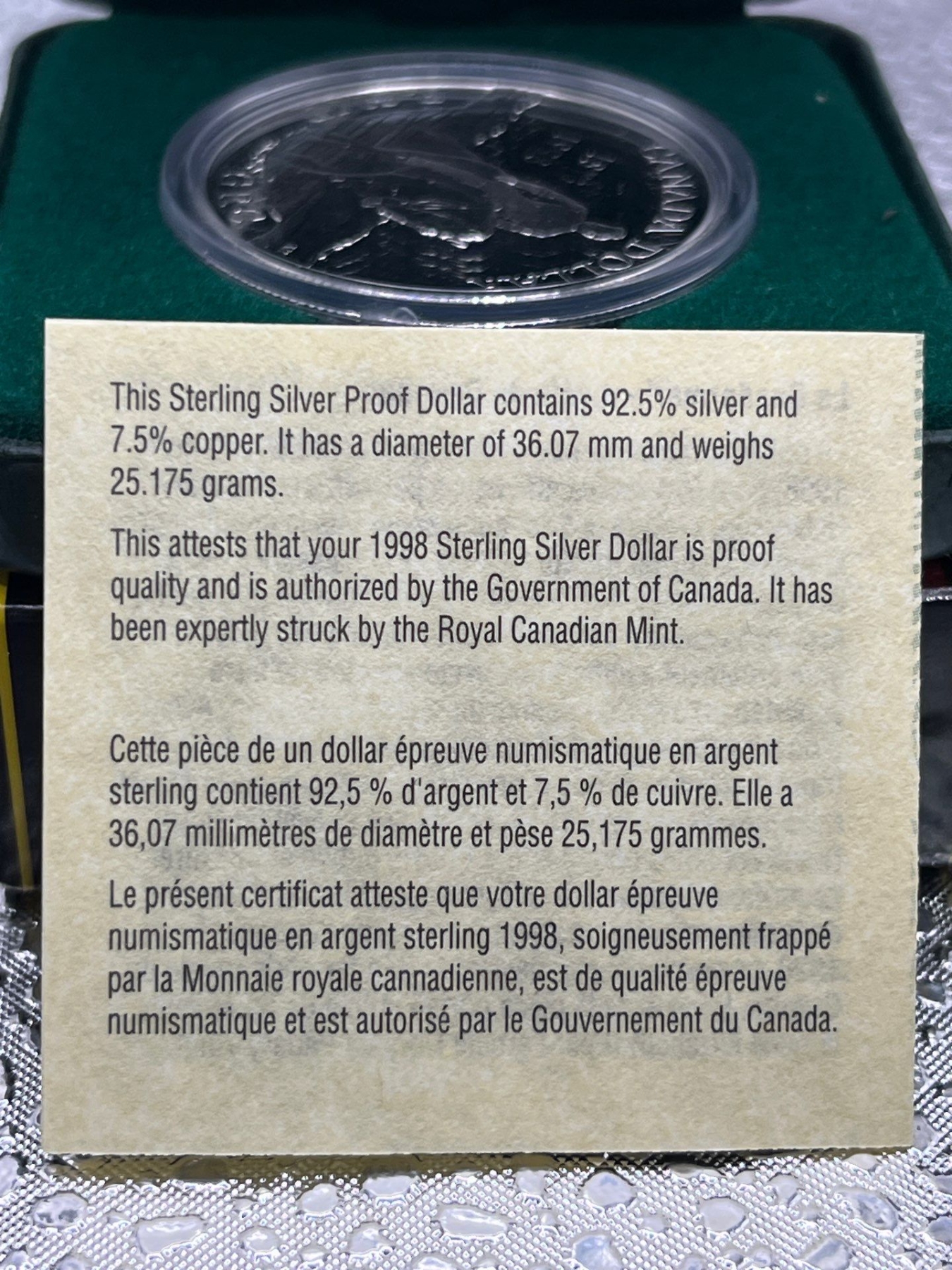 1998 Canadian RCMP Silver Dollar 25.175g 92.5% Silver