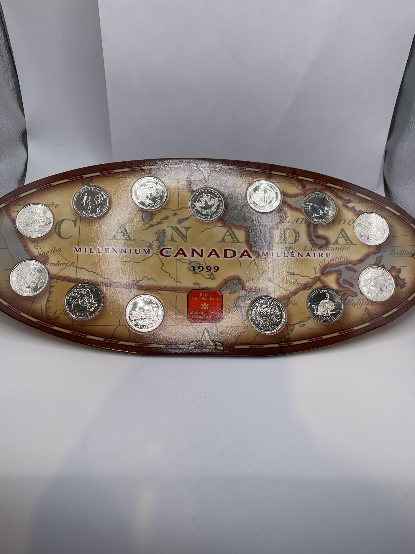 1999 12-Hole Millennium Canada 25-cent Oval Board with Coins