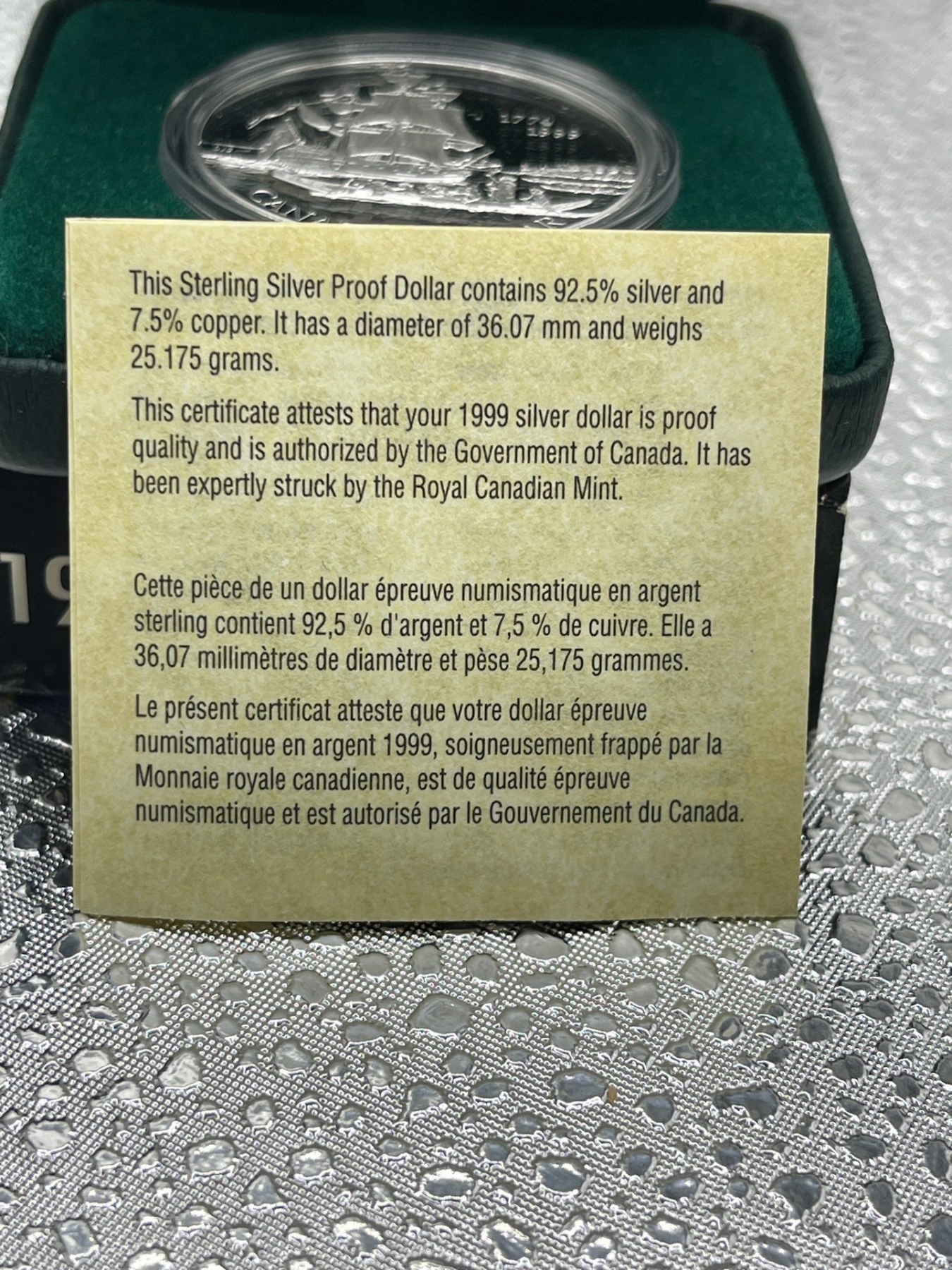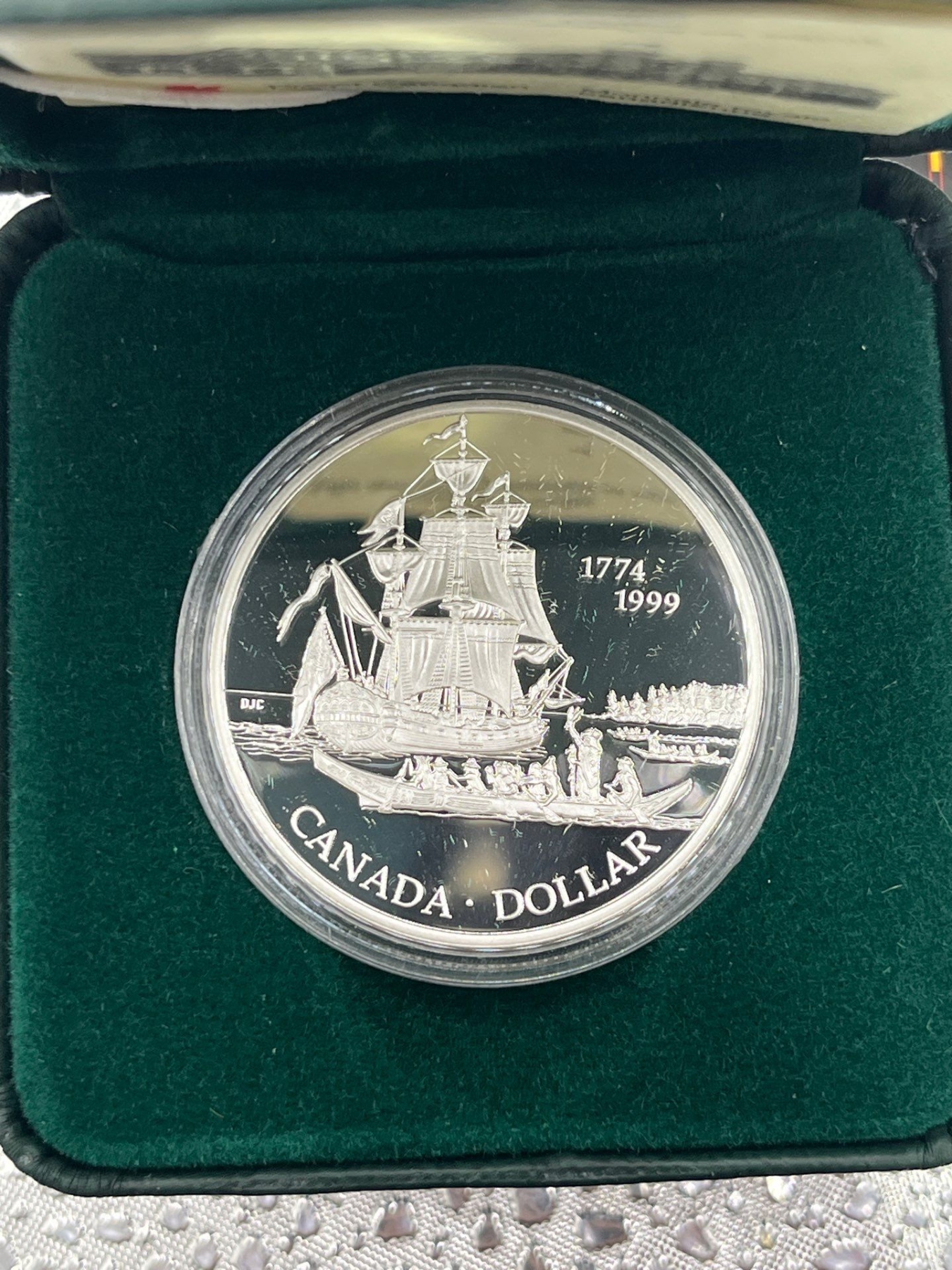 1999 Canadian Sighting of the Queen Charlotte Islands Silver Dollar 25.175g 92.5% Silver