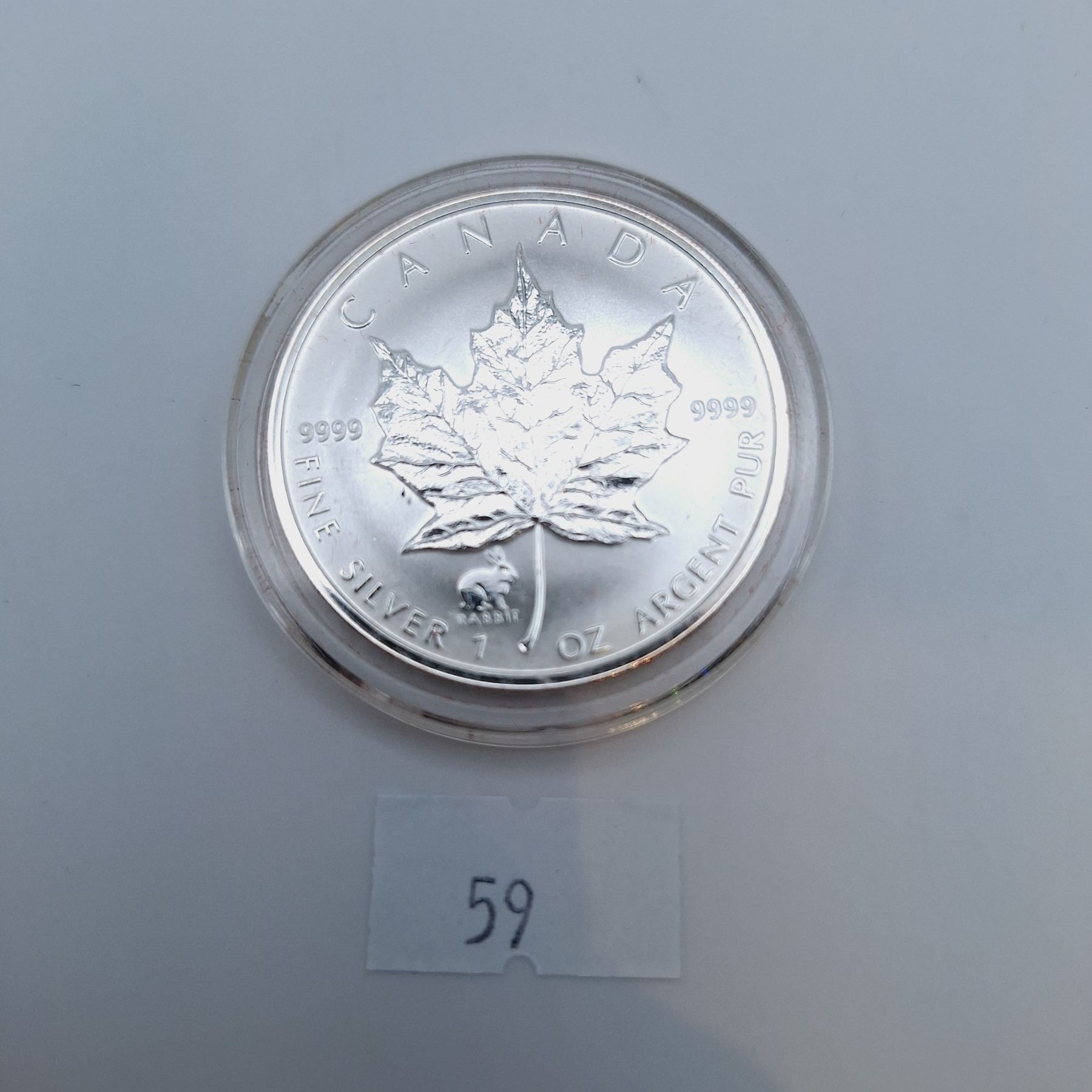 1999 Canadian Silver Maple Leaf - Year of the Rabbit Privy Mark One Troy Ounce .9999 Silver