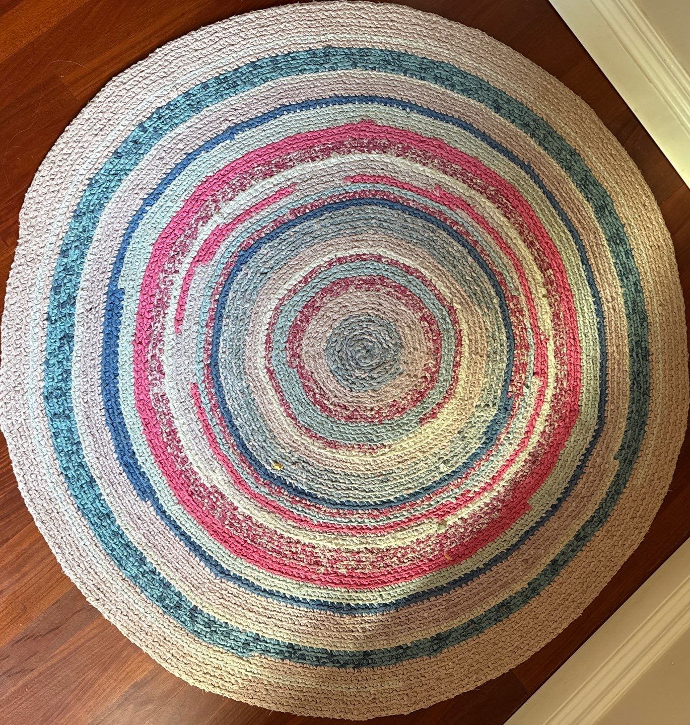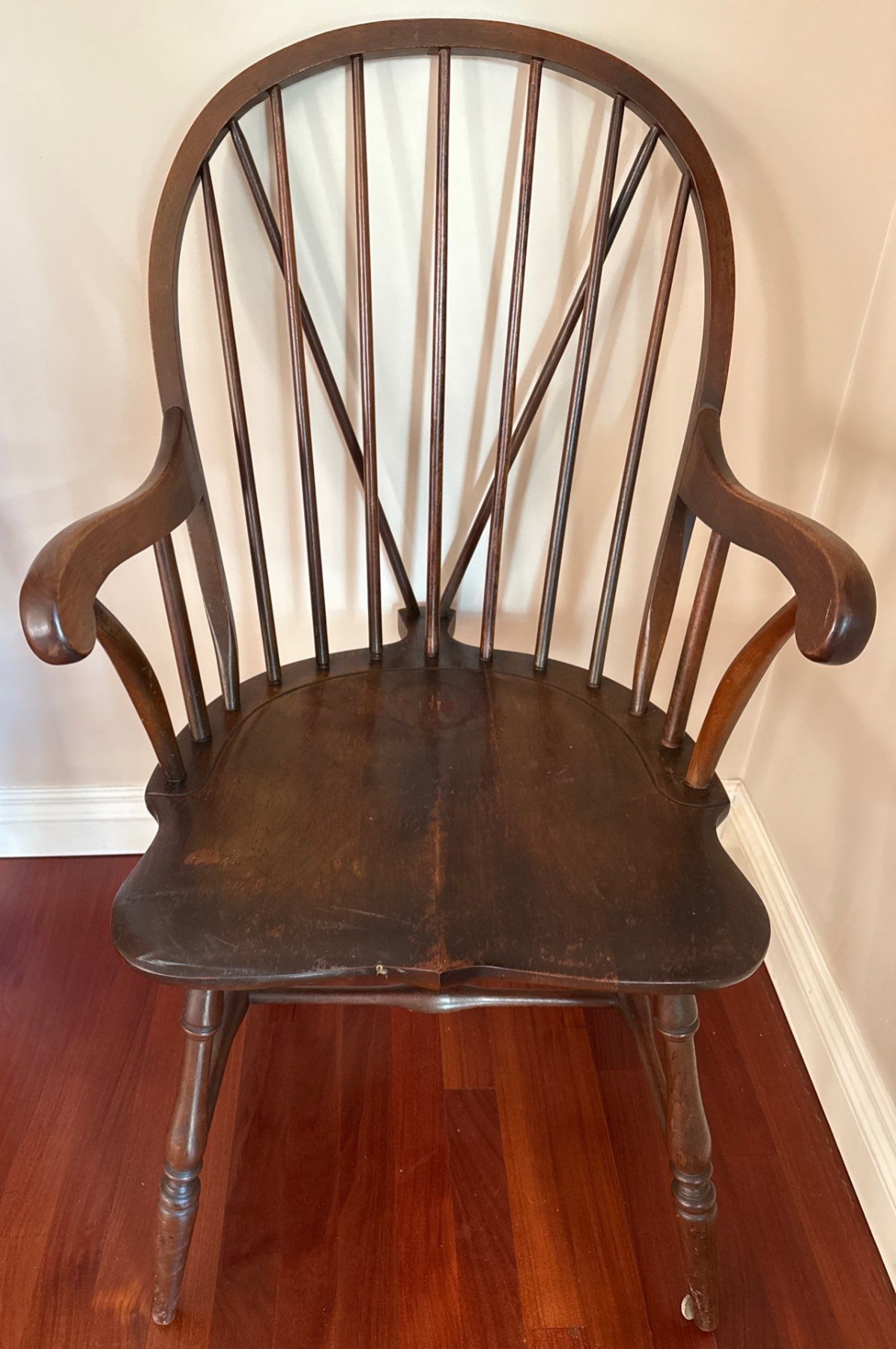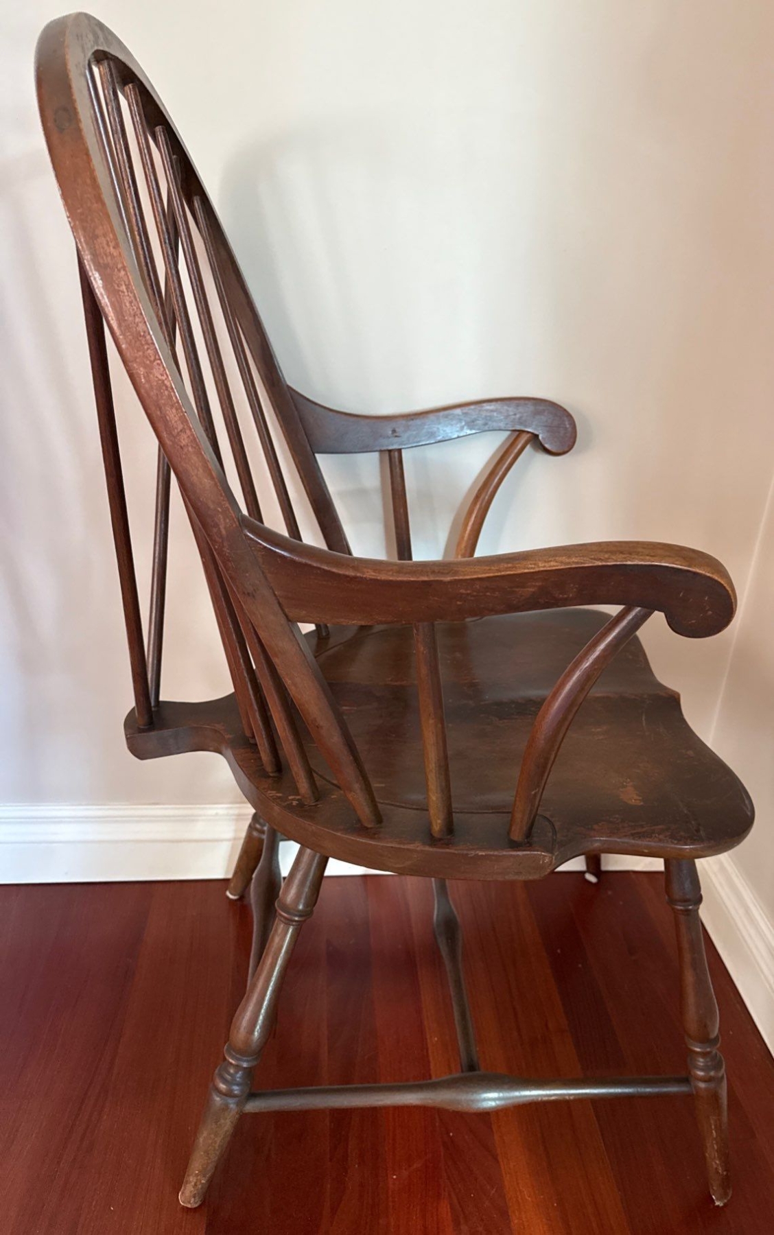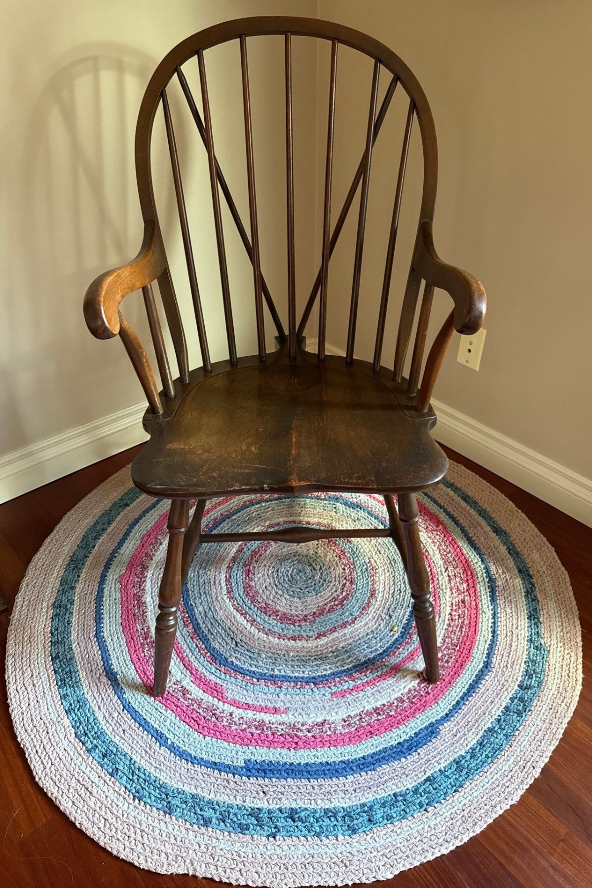 19th Century Wooden English Edwardian Windsor Chair w/Handmade Hook Rug 21x21x39"t