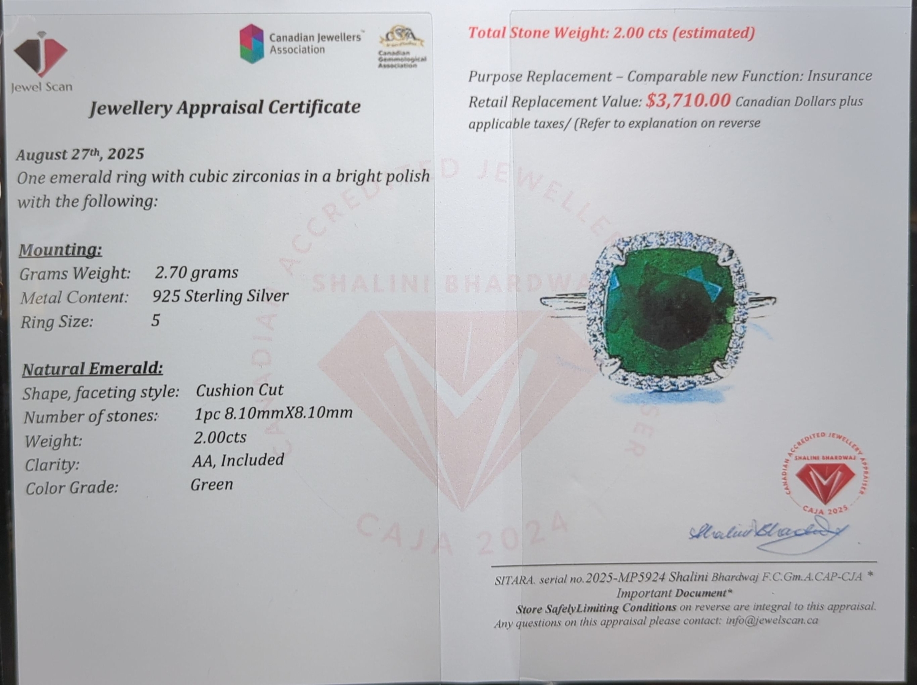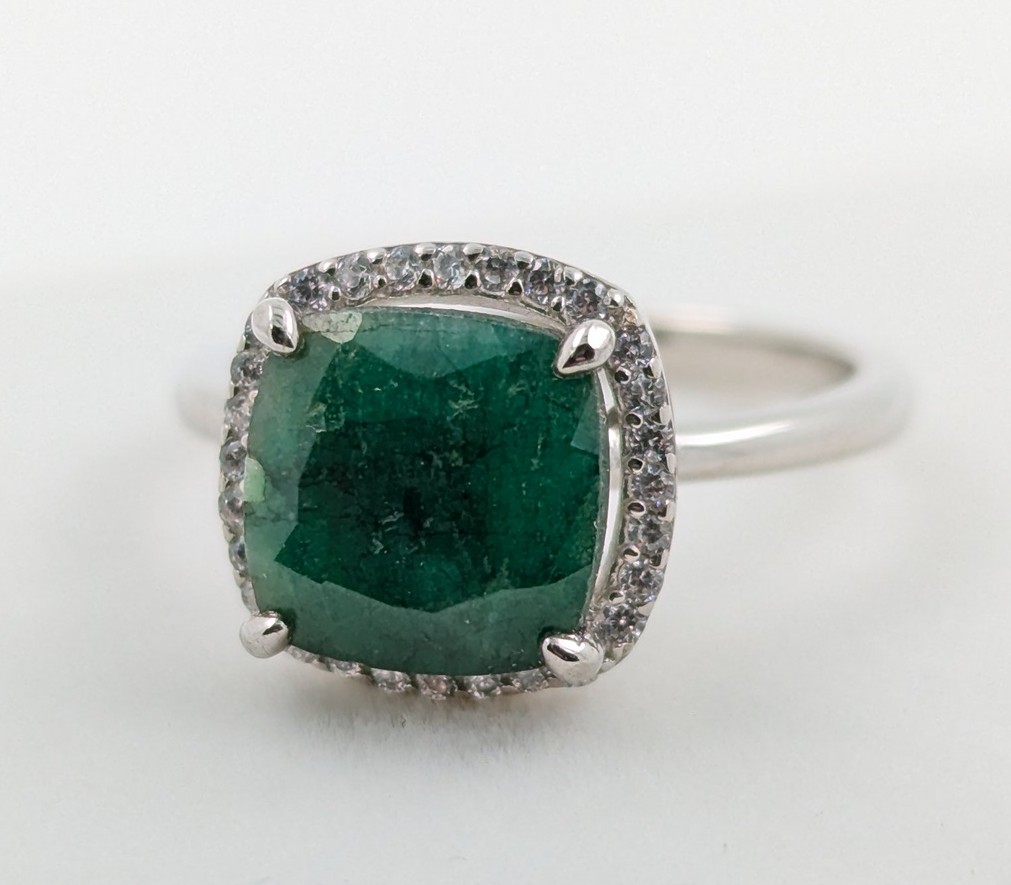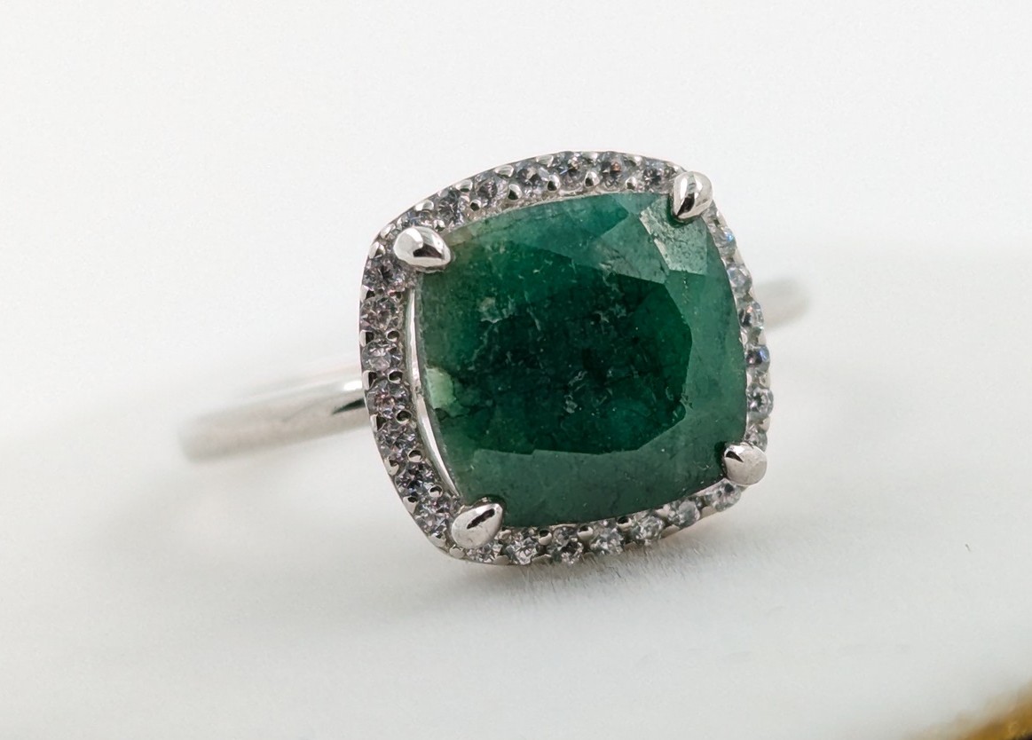 2.7 ct Certified Silver Emerald Gemstone Ring ($3,710 Appraisal)