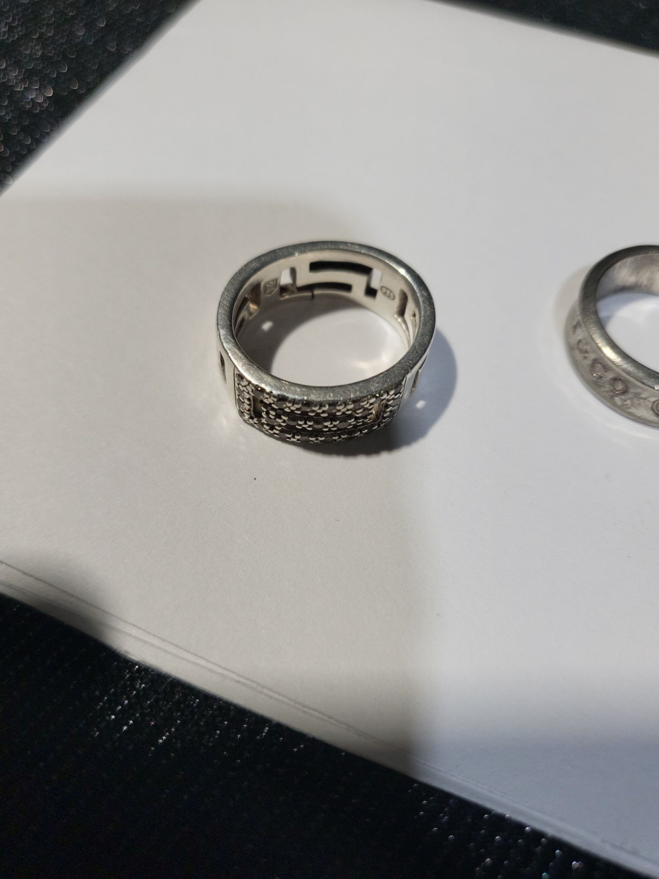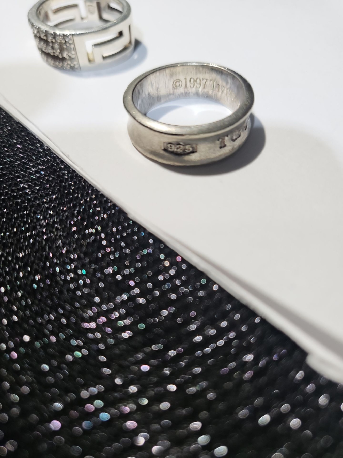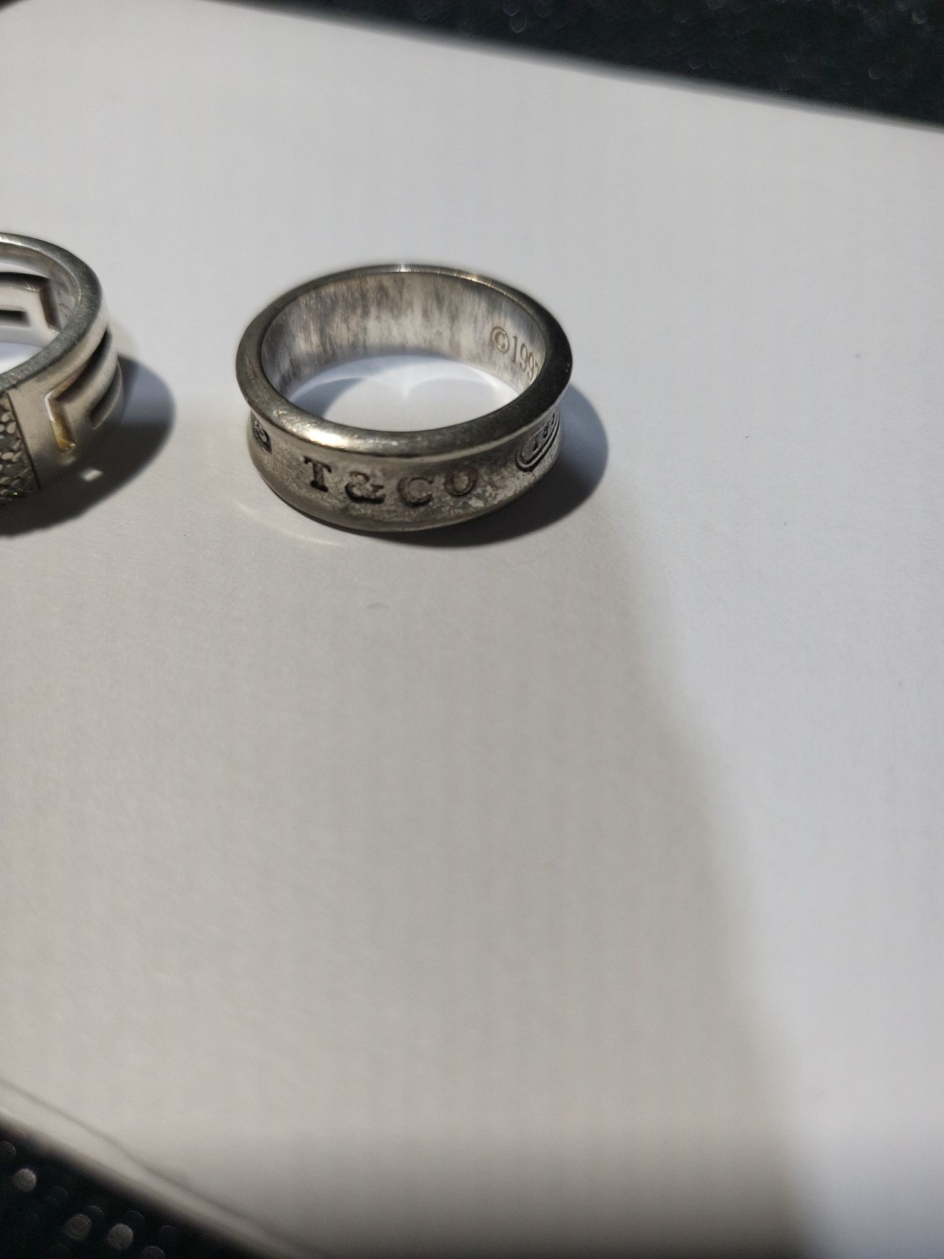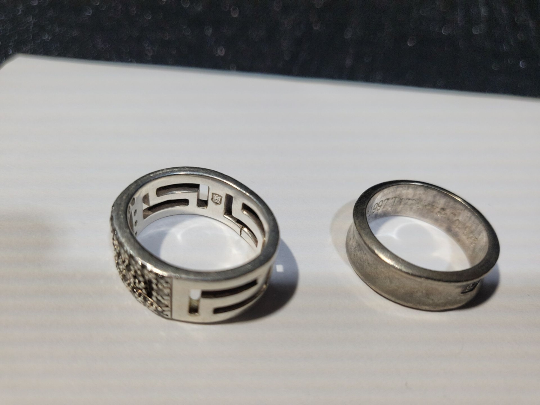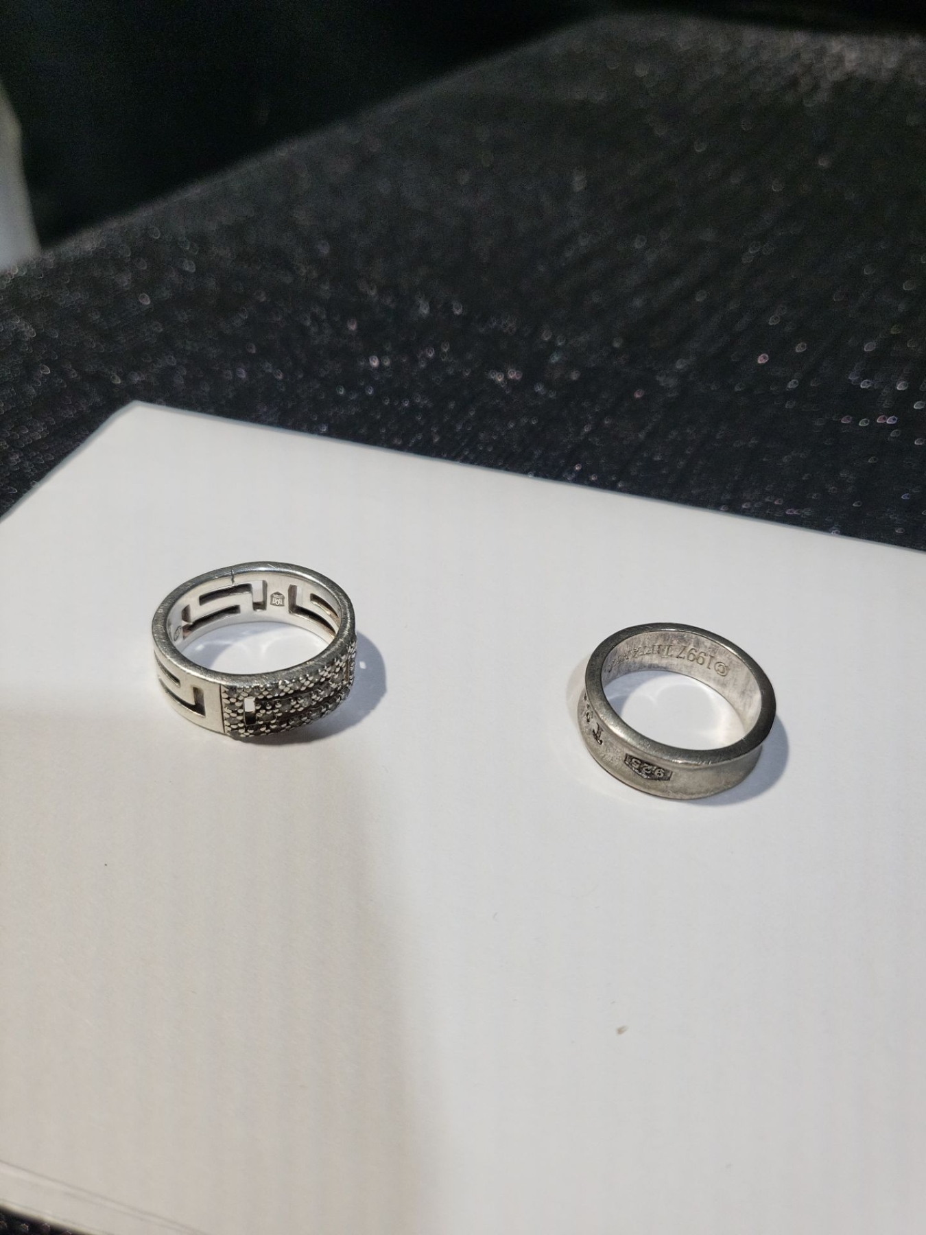 2 banded rings for the winner here! Not sure of the size, but they do offer unique designs and one is engraved with various years