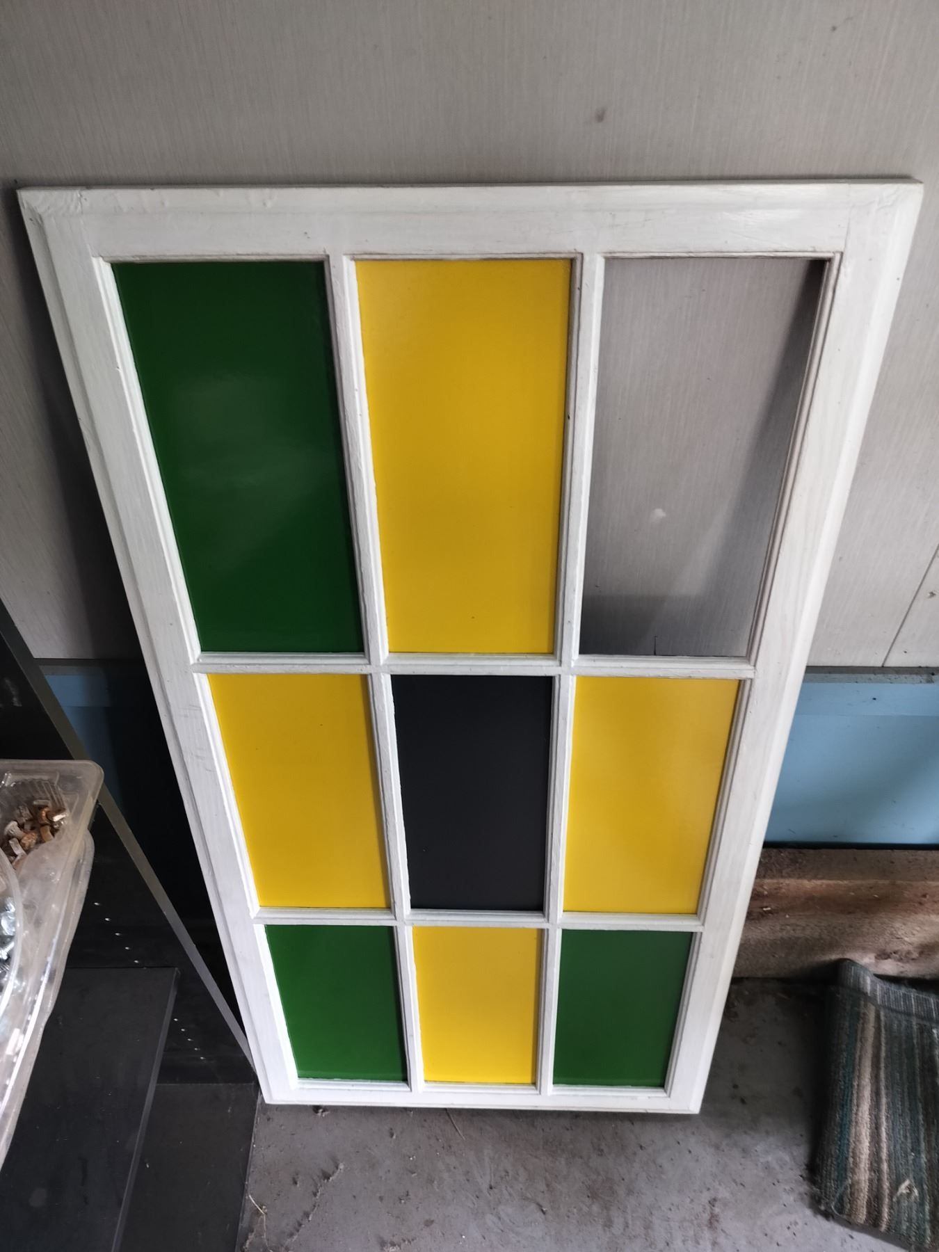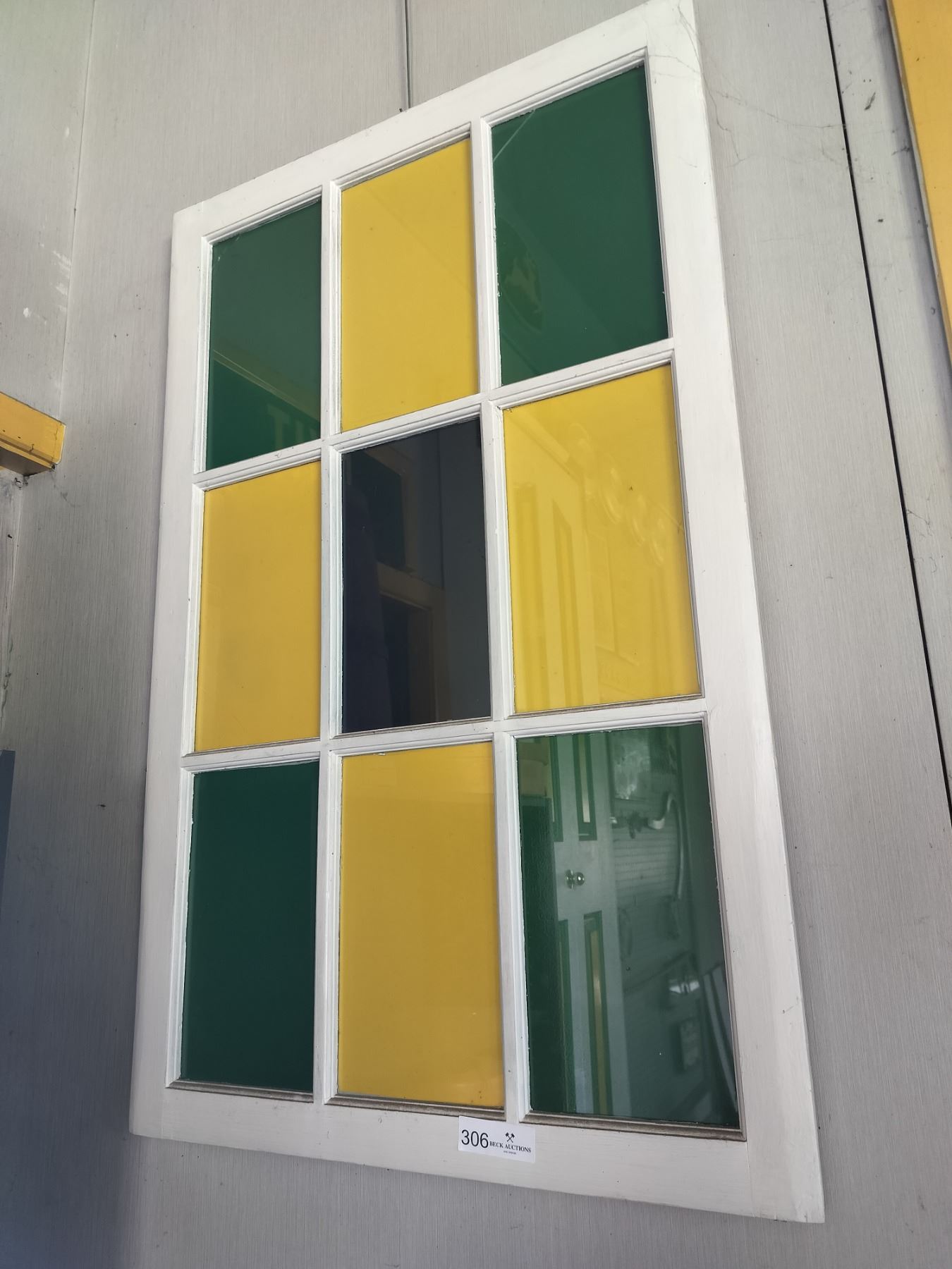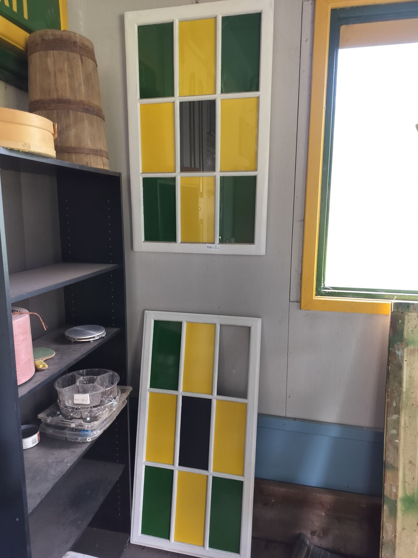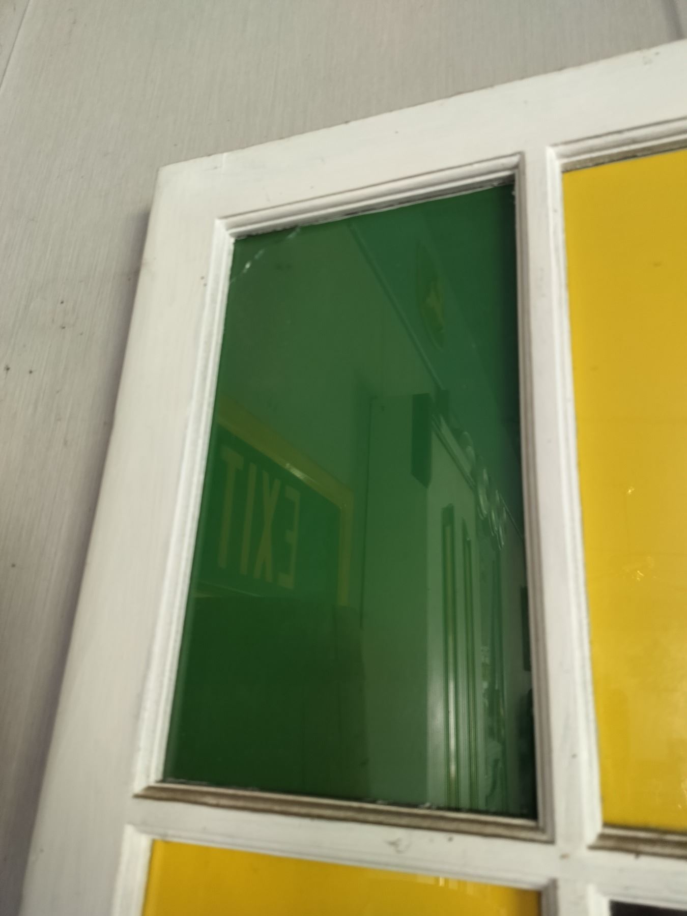 2 John Deere Coloured Wall/Window Decor (1 Wood Panel Missing) 25 1/2 Wide x 41 High