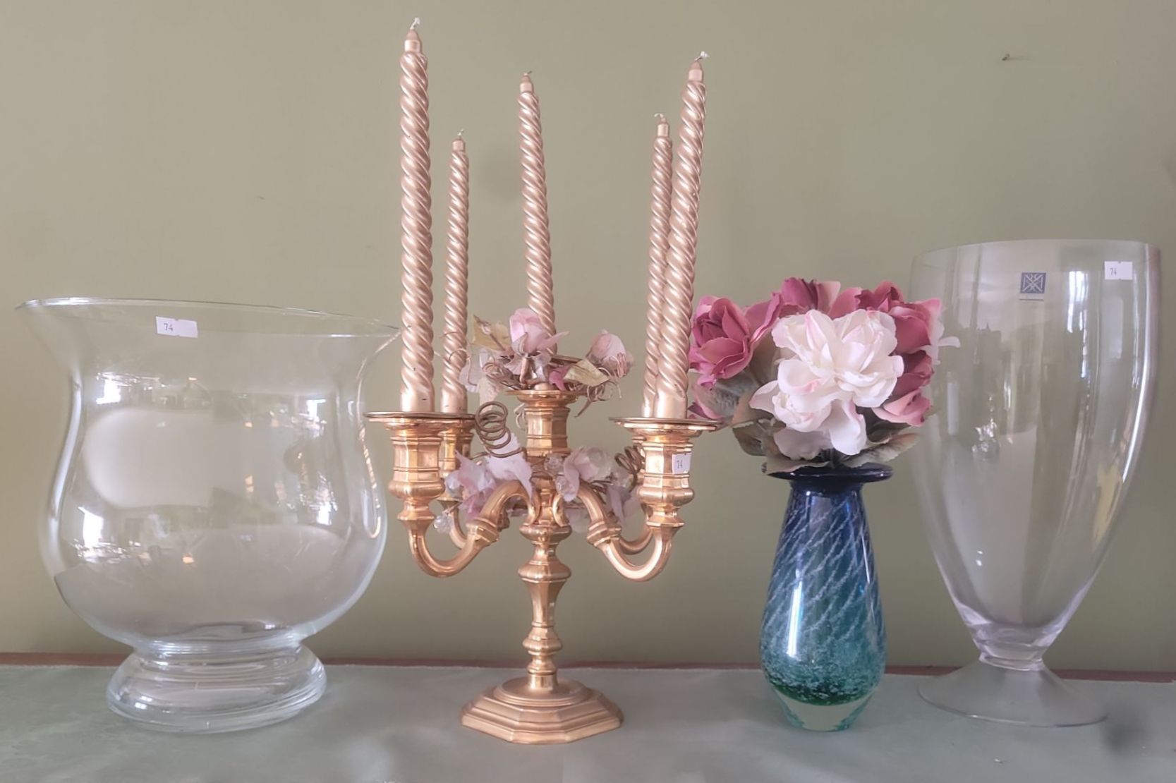 2 Large Glass Vases, Decorative Thick Glass Vase, Gold Plated from German Import Candelabra