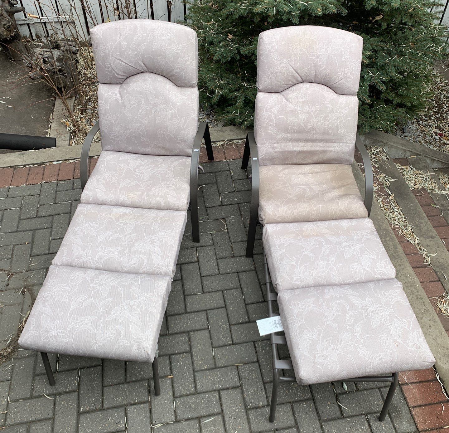 2 Lawn Loungers w/ Cushions & Adjustable Tilt