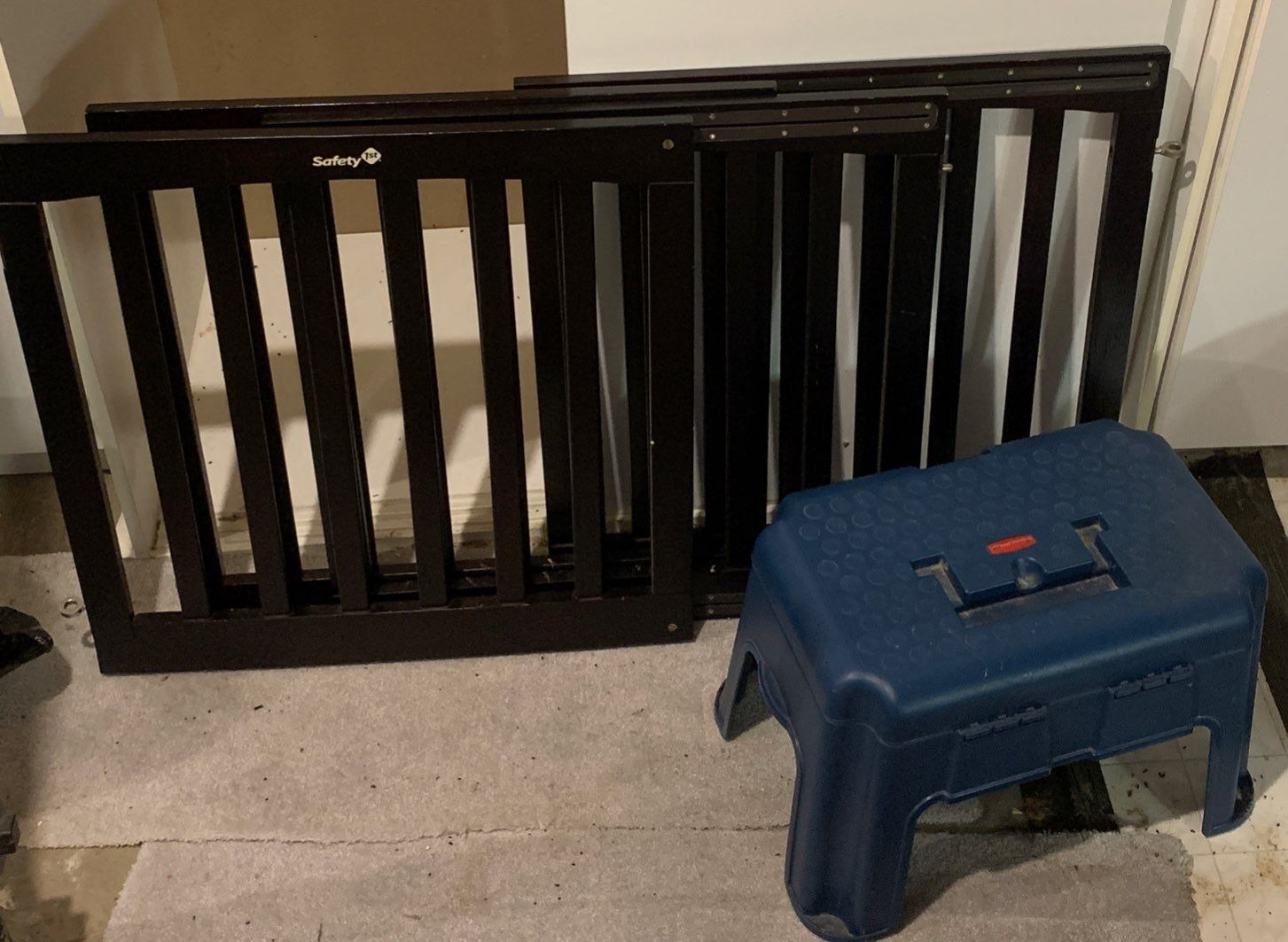 2 Mahogany Baby Gates w/ Step Stool/Storage Vessel