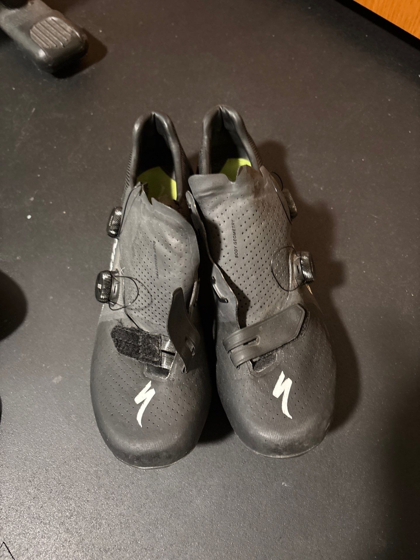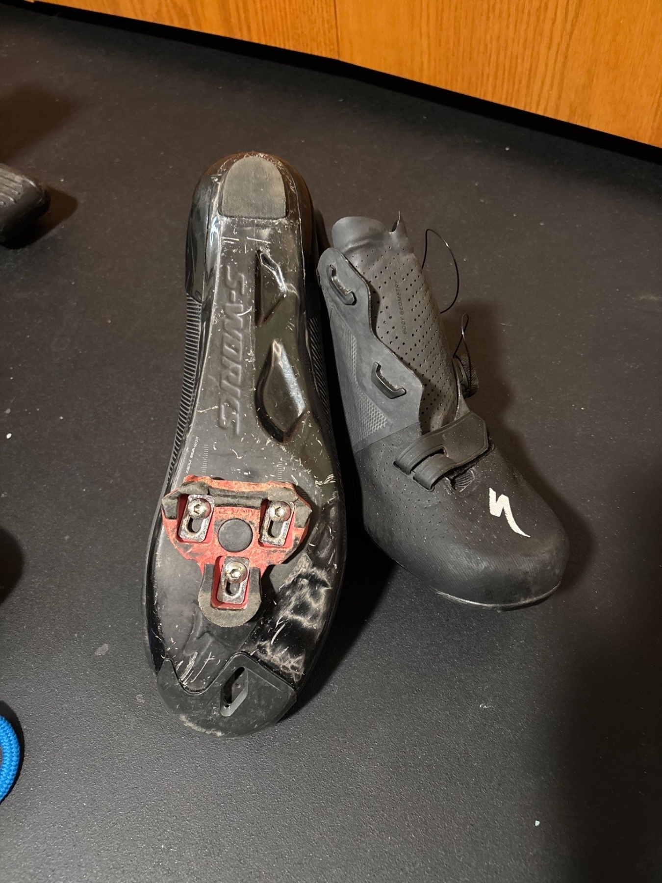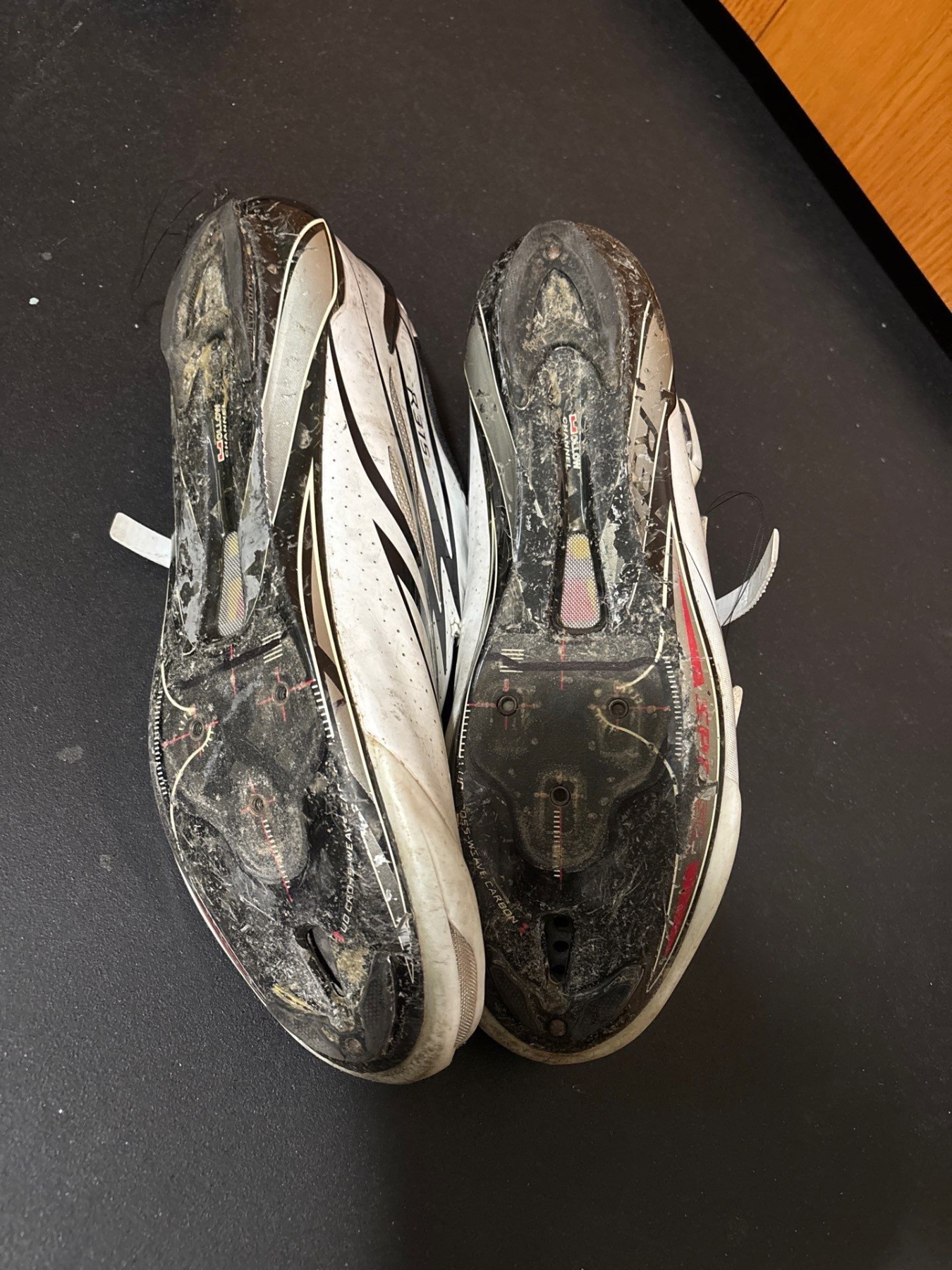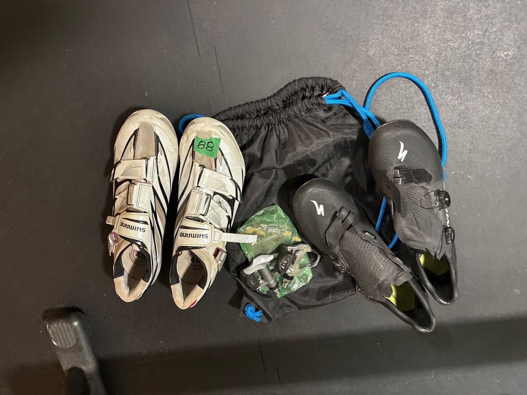 2 Pairs Of cycling Shoes Size 13 with Shimano Clip Petals .