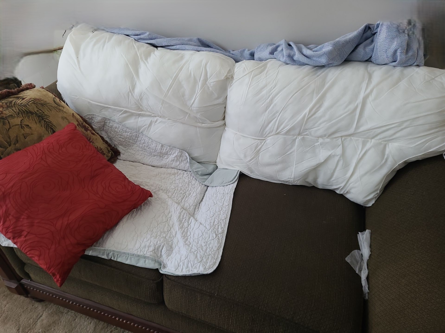 Damaged Back Cushions, Includes Cover and Throw Pillows, Very Heavy/ Bring Assistance