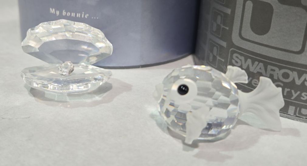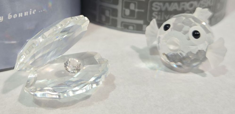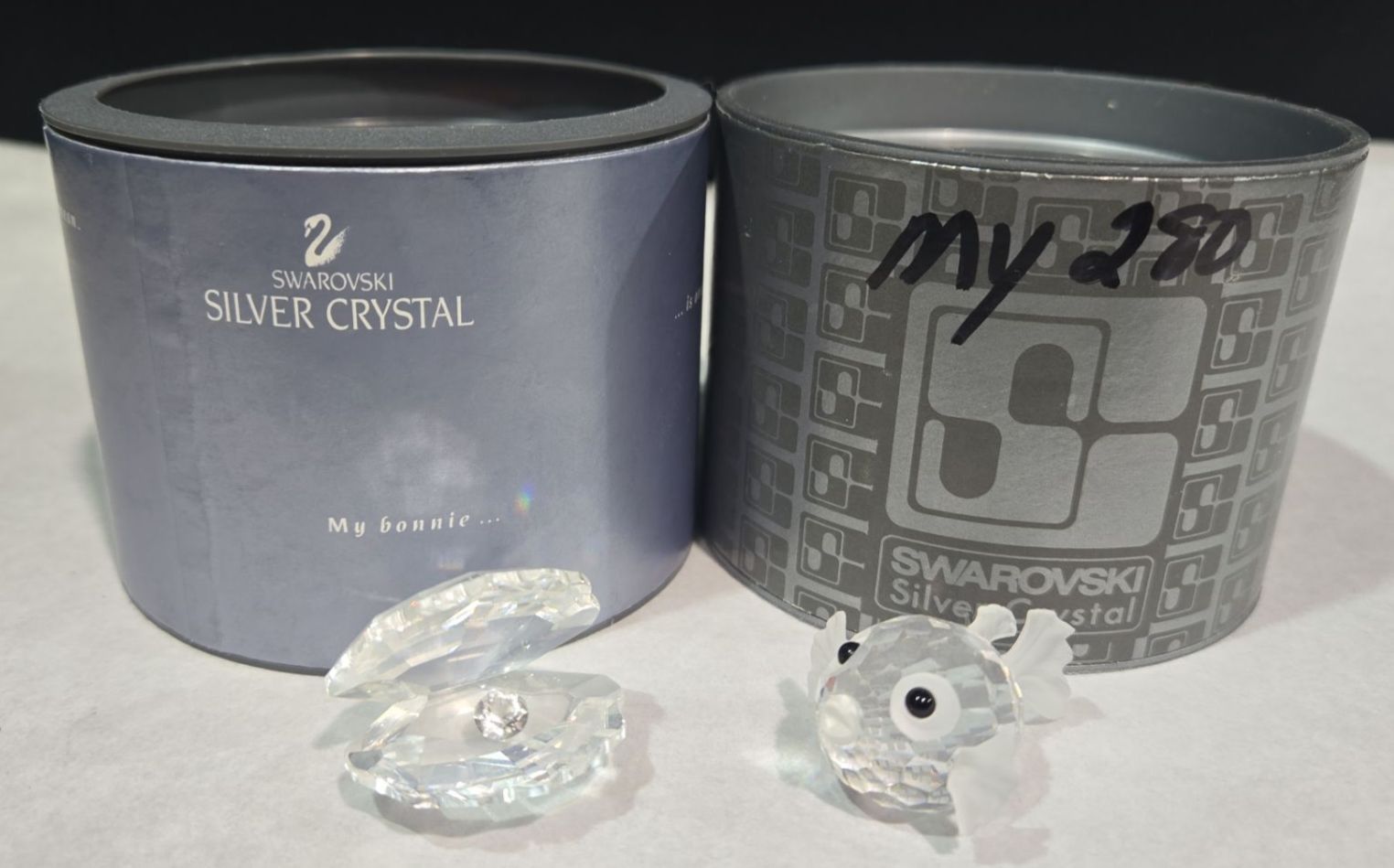 2 Swarovski Crystals 1 Puffer Fish (1.5 L) & Clam (1 T) In Original Boxes