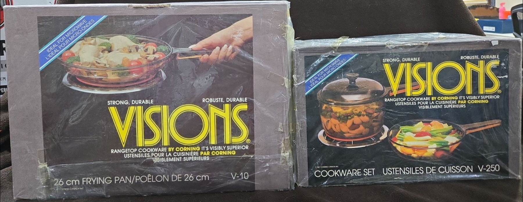 2 Unused Vintage Visions Rangetop Cookware Set By Corning