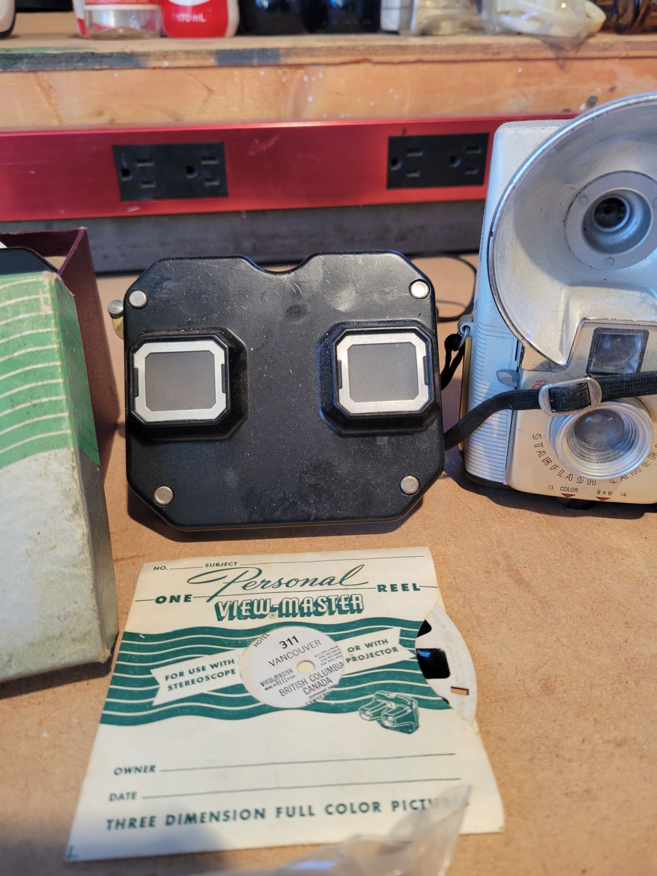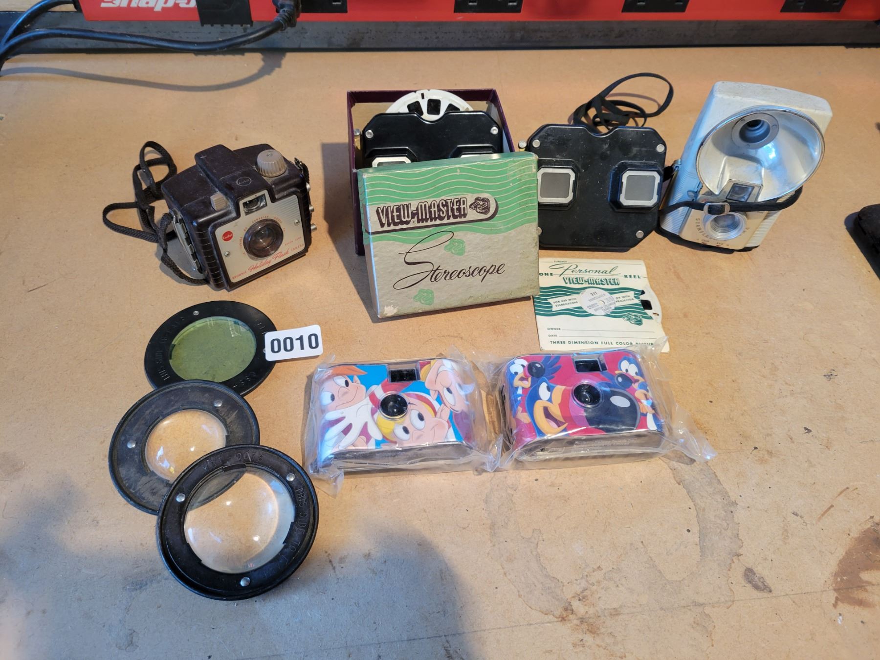2 Viewmasters - 2 Vintage Cameras - 2 Disposable Cameras - Lenses - Tripod
