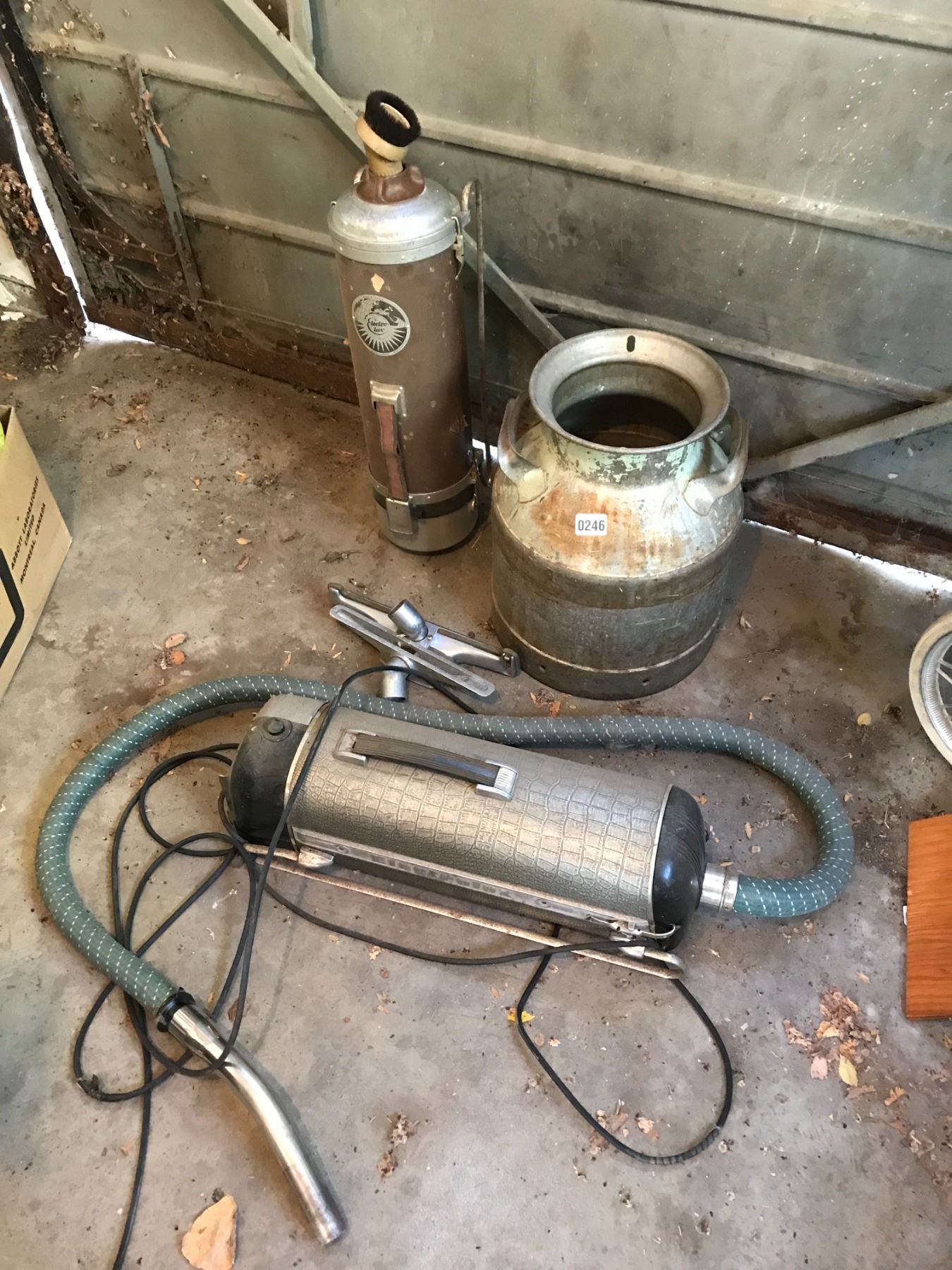 3 Vintage Electrolux Vacuum Cleaners & Large Milk Jug