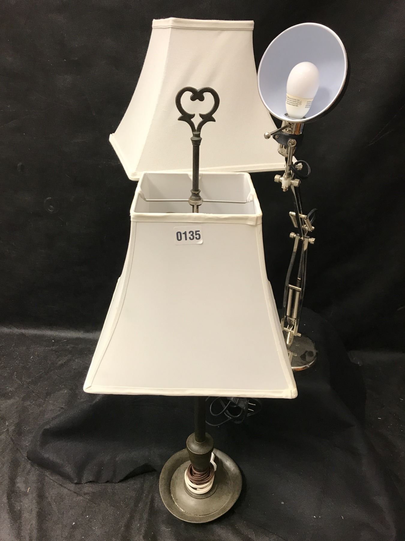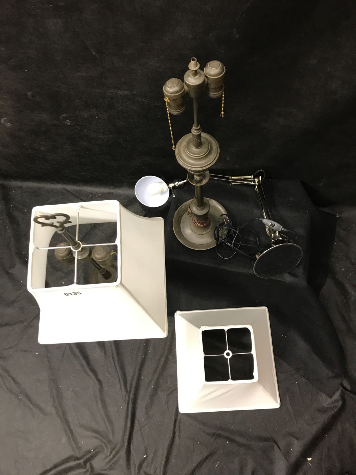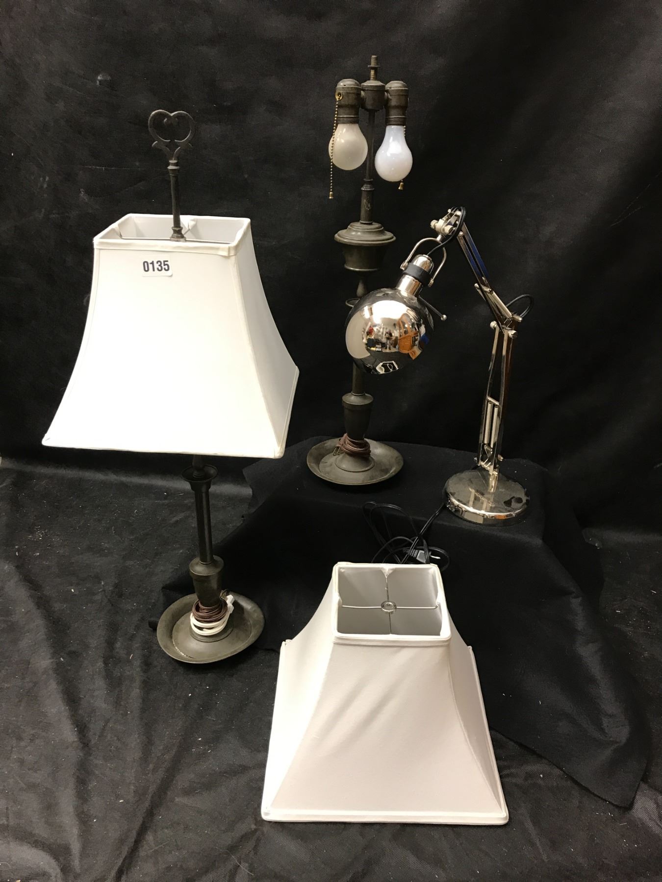 2 Vintage Lamps/Shades & Chrome Desk Light