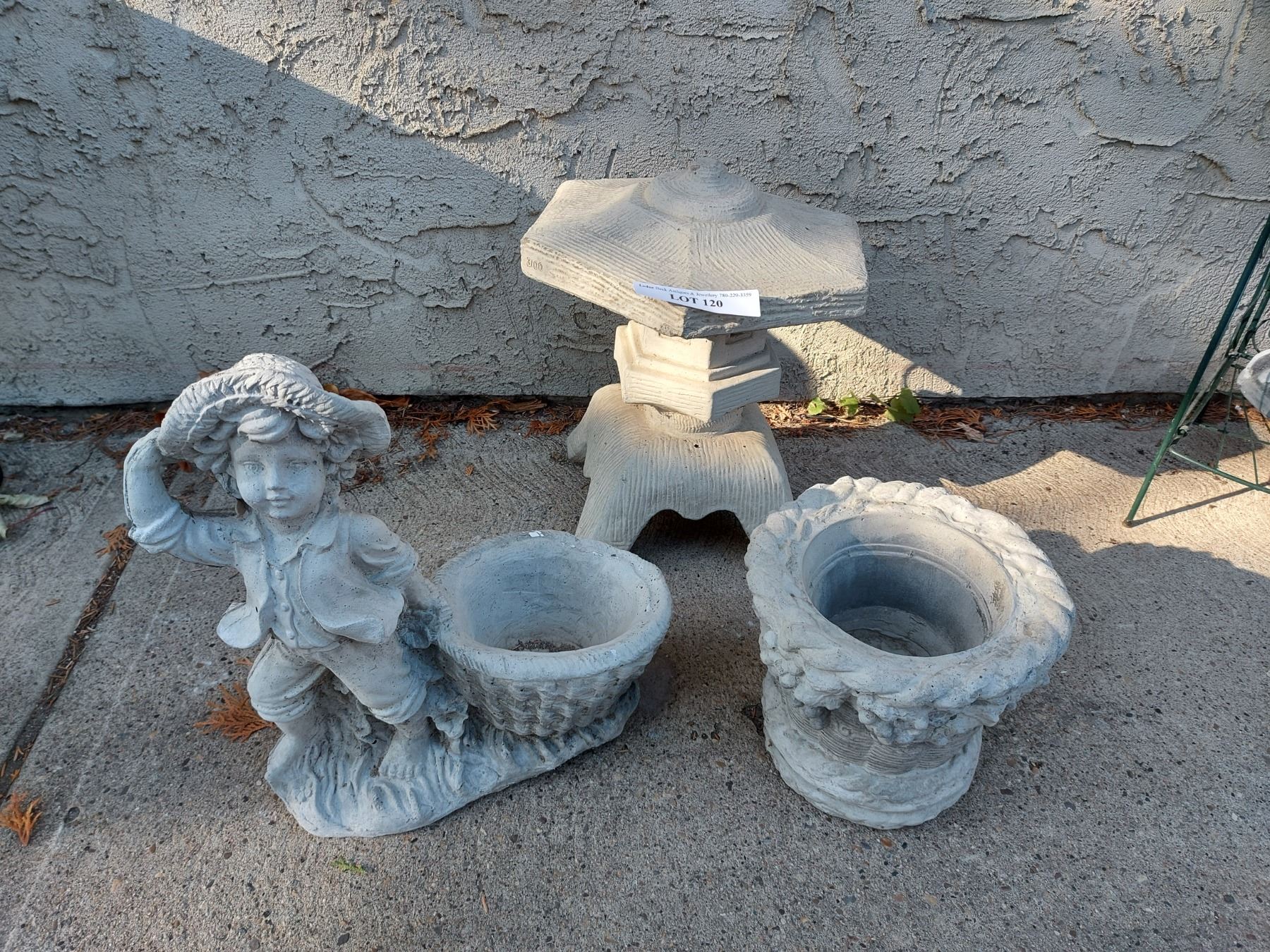3 concrete ornamental planters, concrete/plaster garden bagota