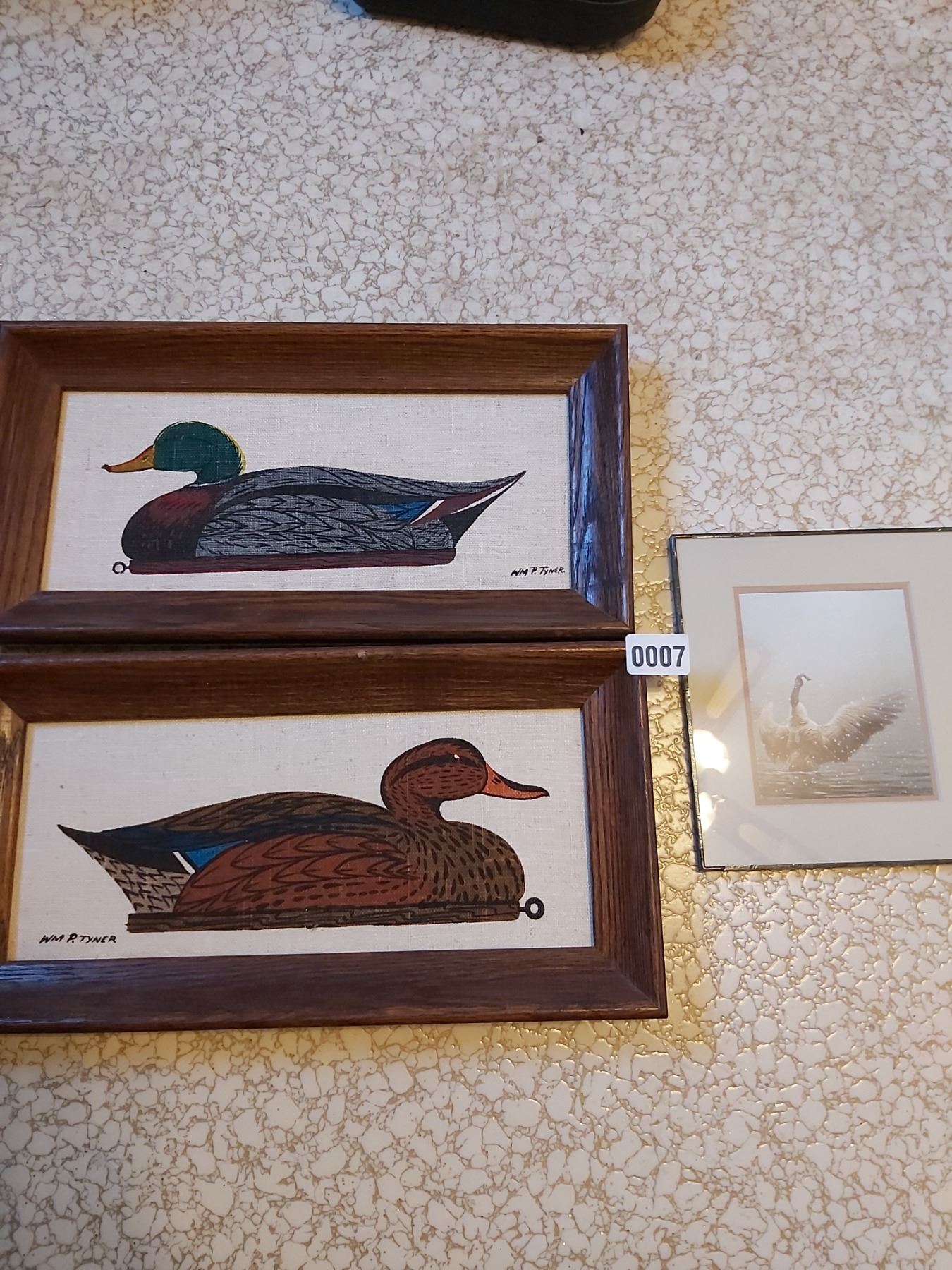 2 framed pictures of ducks (Artist: Wm. P. Tyner 16.5" L, 8.5" H). Canada Goose picture (Artist: Robert Bateman 7.5" W, 8.5" H)
