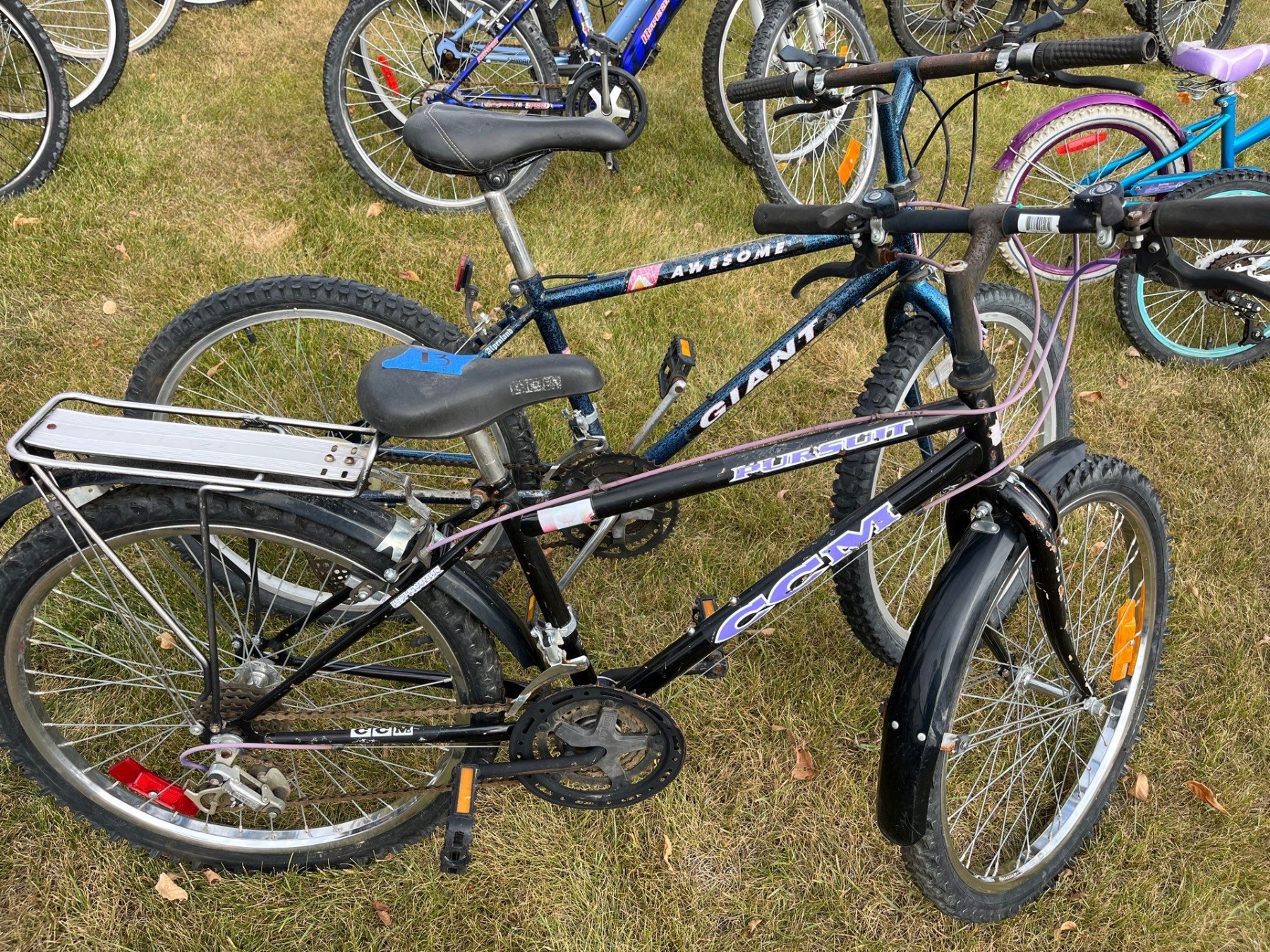 2 mountain bikes, one giant and one CCM pursuit
