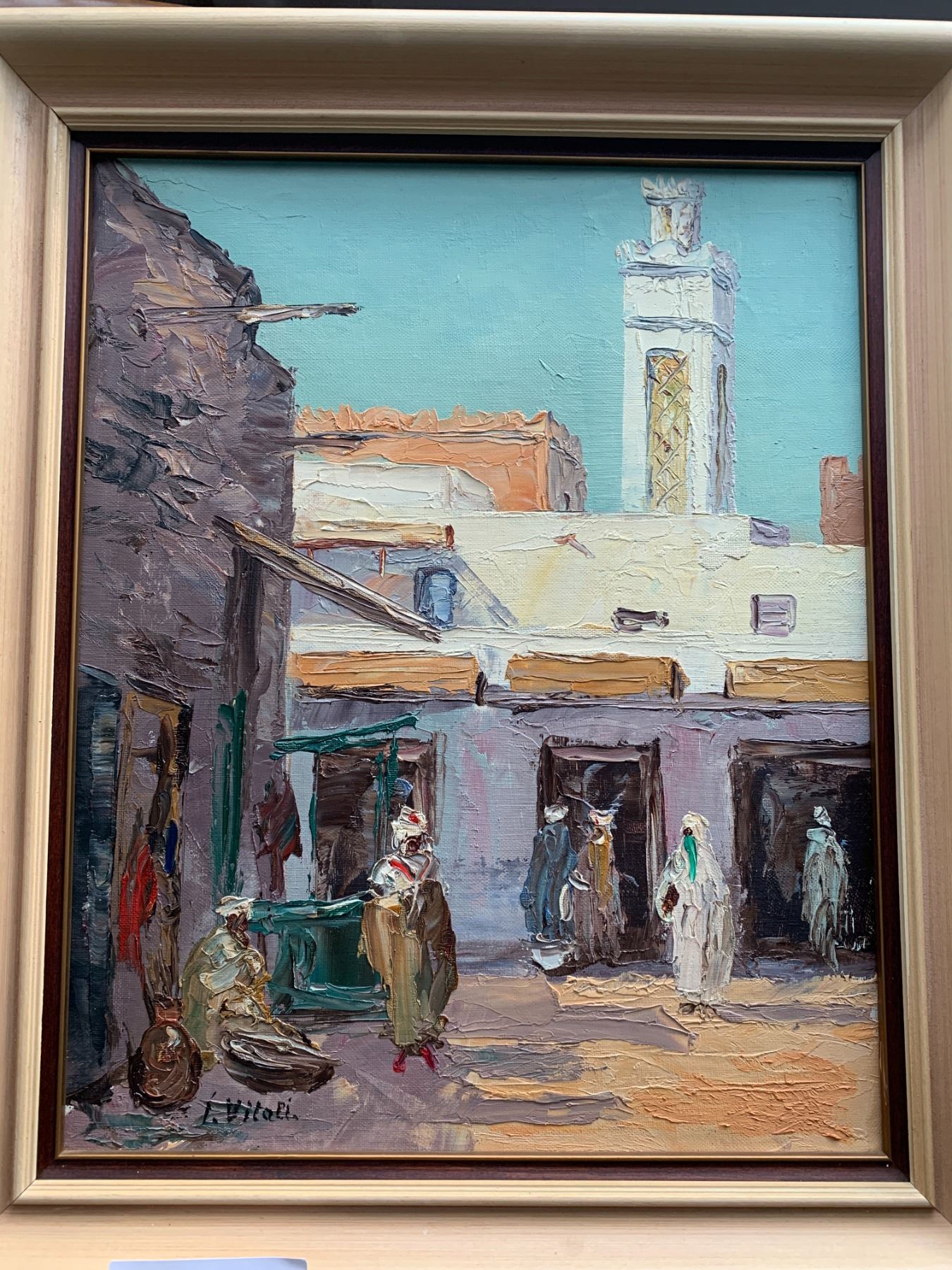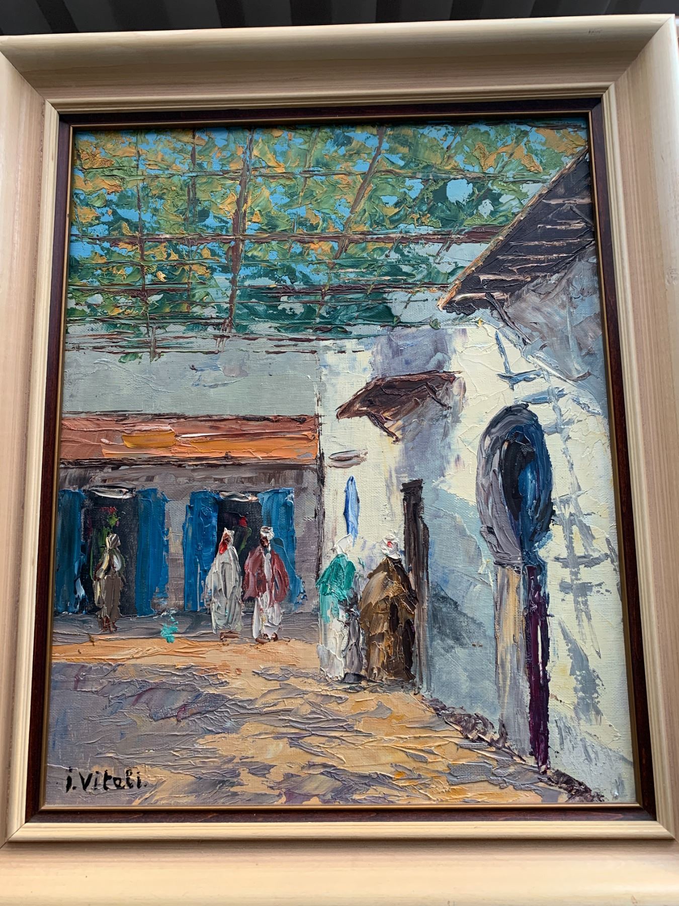 2 x Framed Oil On Canvas North African Scene Paintings by J.B. Vitali