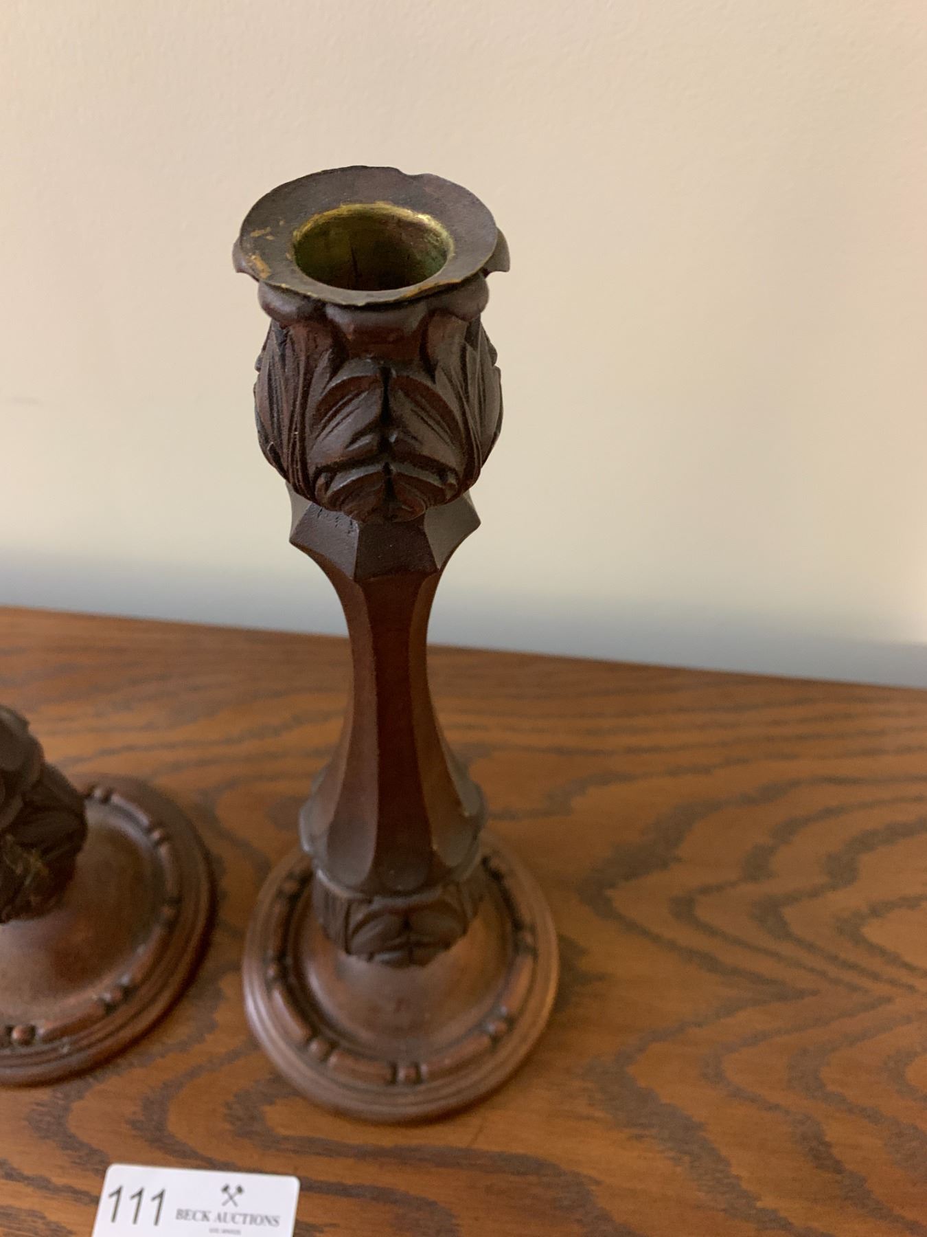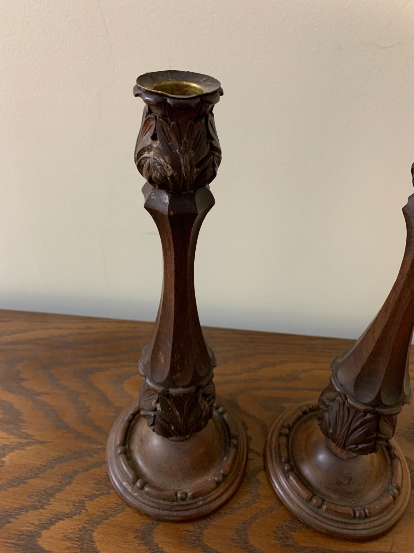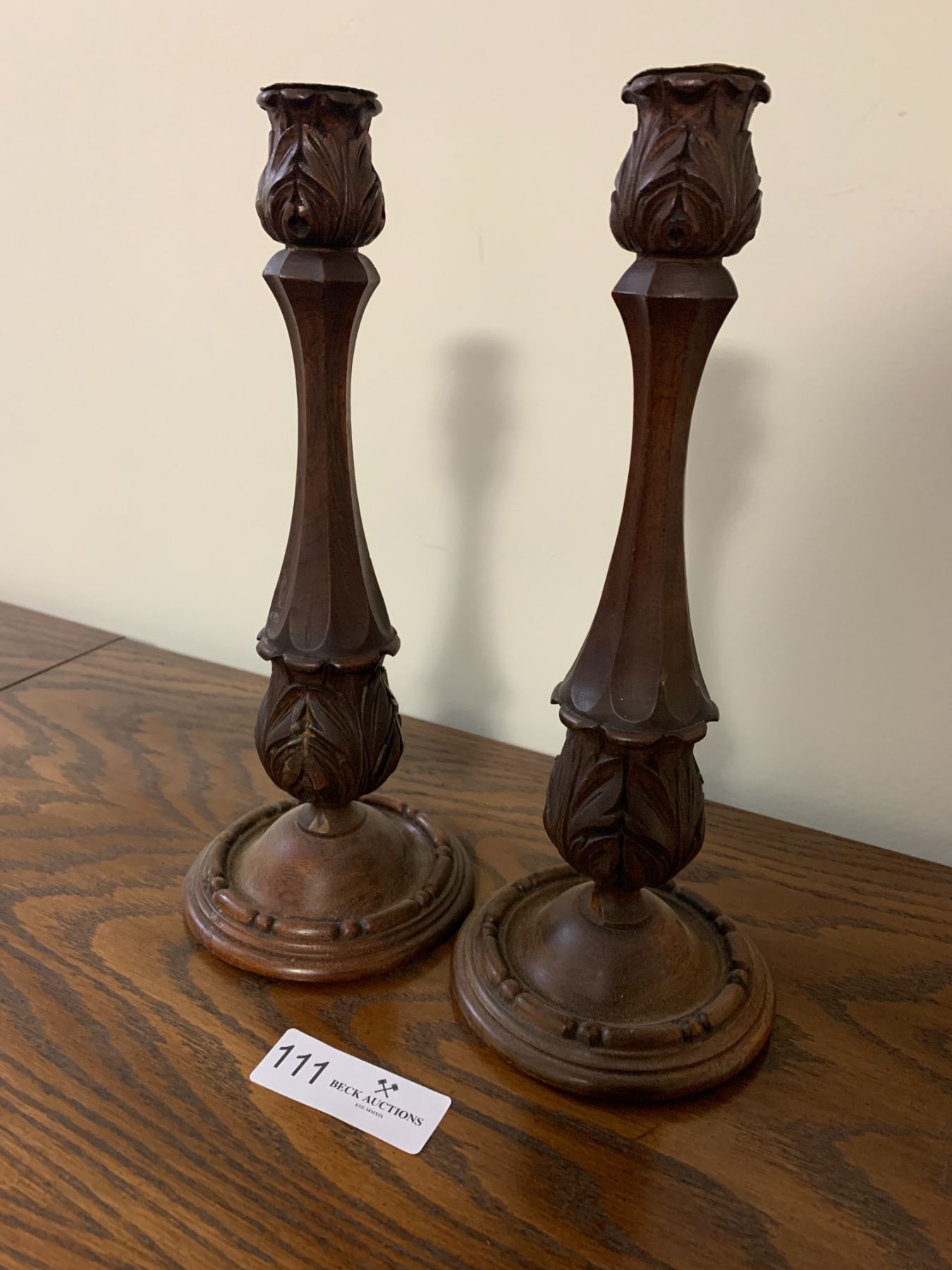2 x Hand-Carved Wooden Candle Holders (11.5 H)
