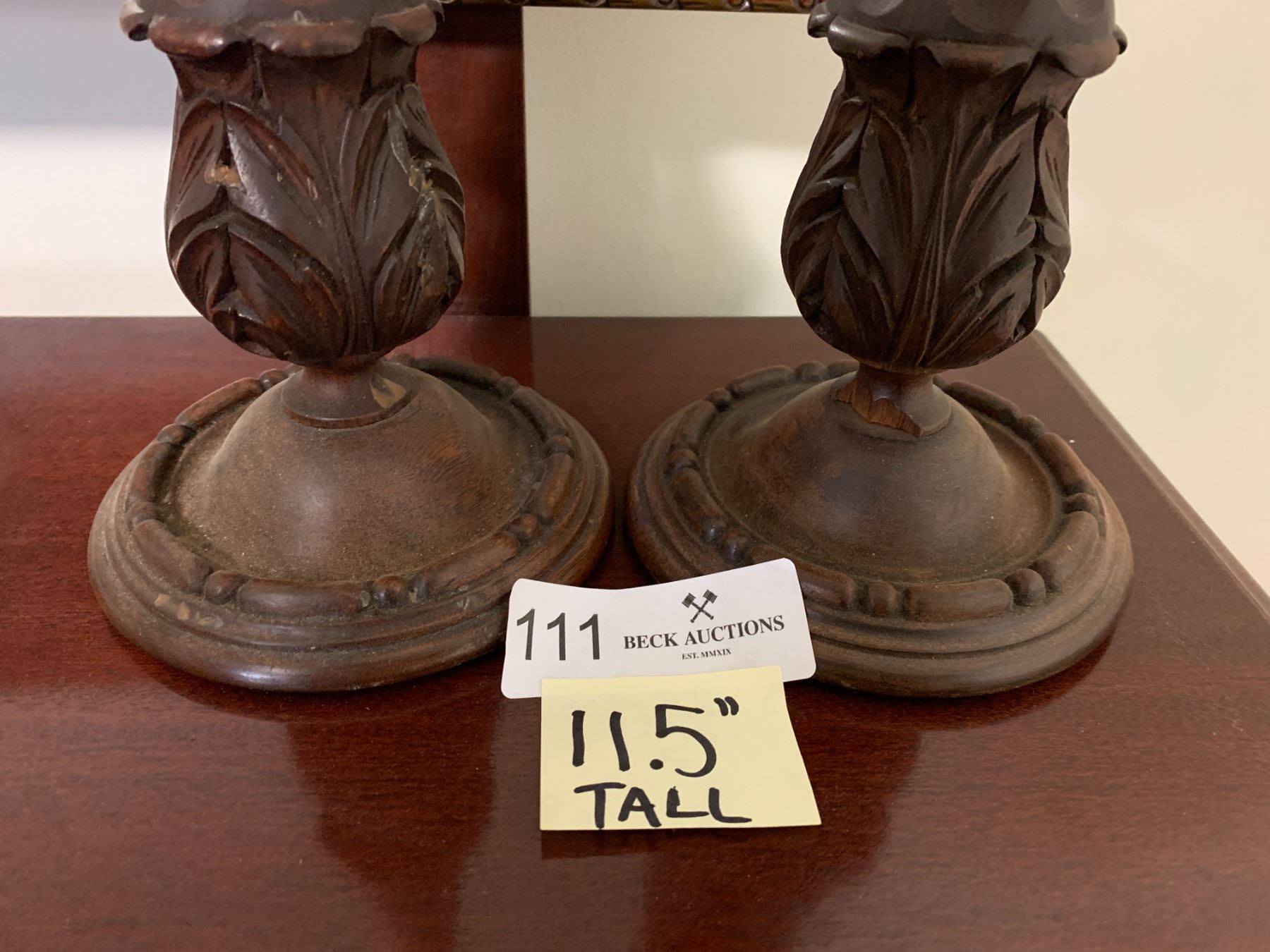 2 x Hand-Carved Wooden Candle Holders (11.5"H)