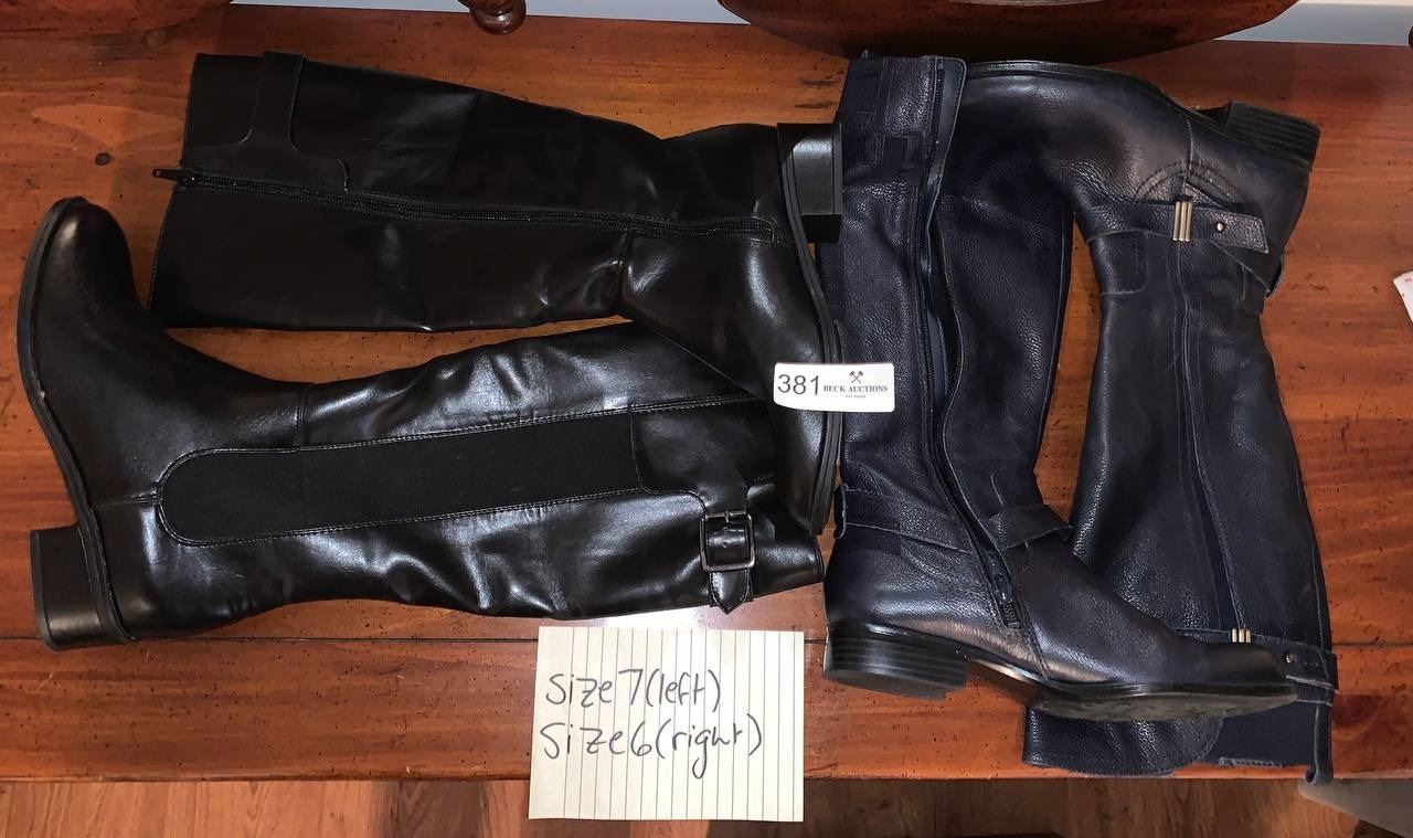2 x Pairs of Women's Black Leather-Style Boots (Size 6 and 7)
