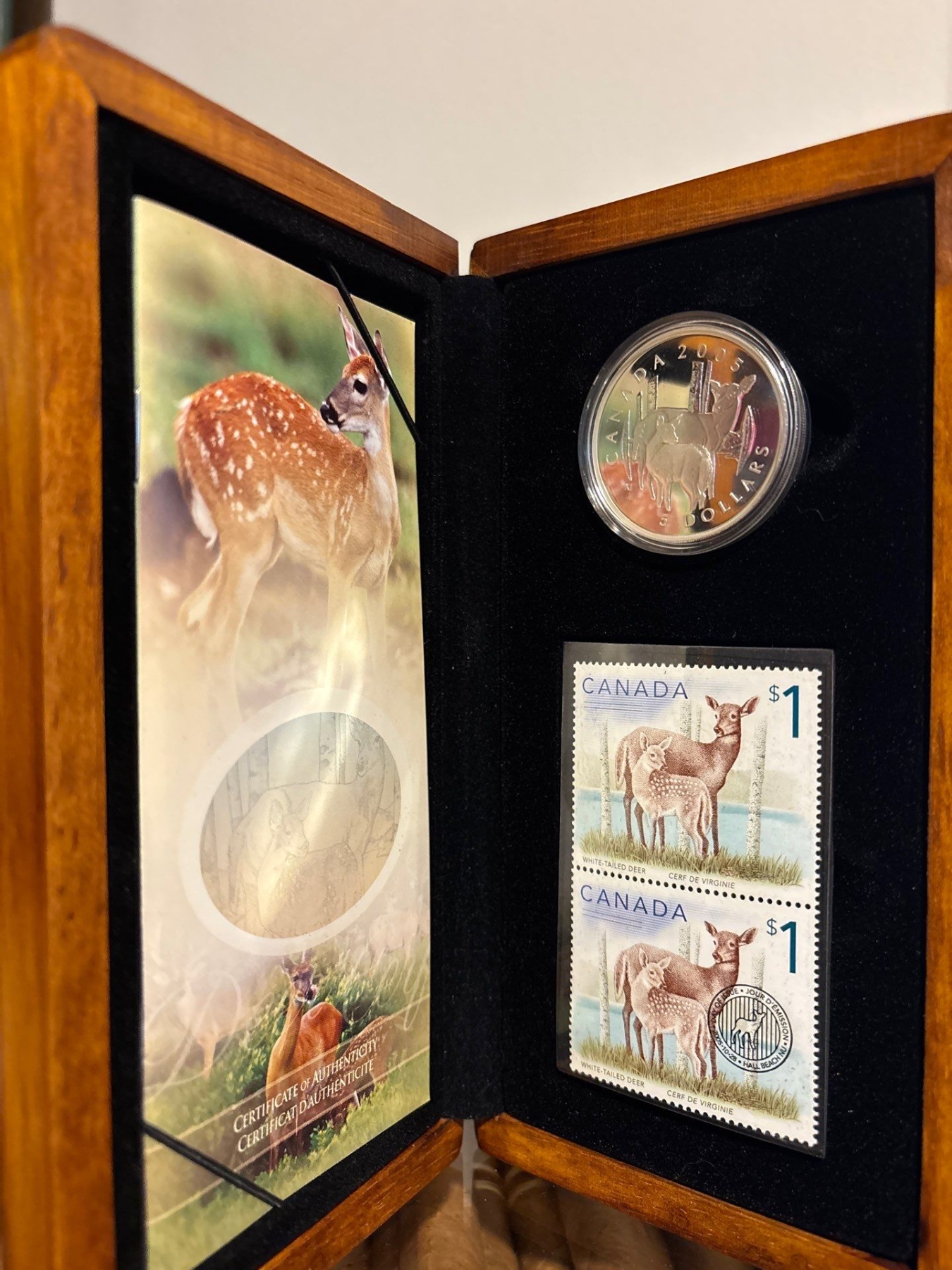 2005 $5 Canadian Wildlife: Deer & Dow- Pure Silver Coin and Stamp Set