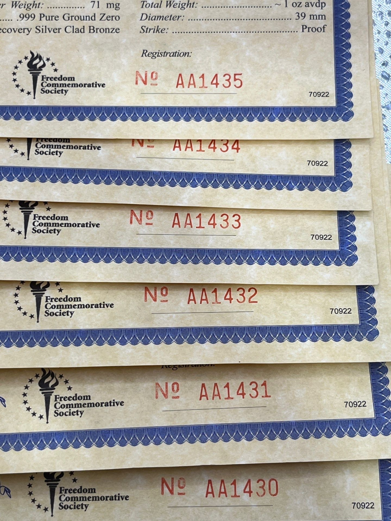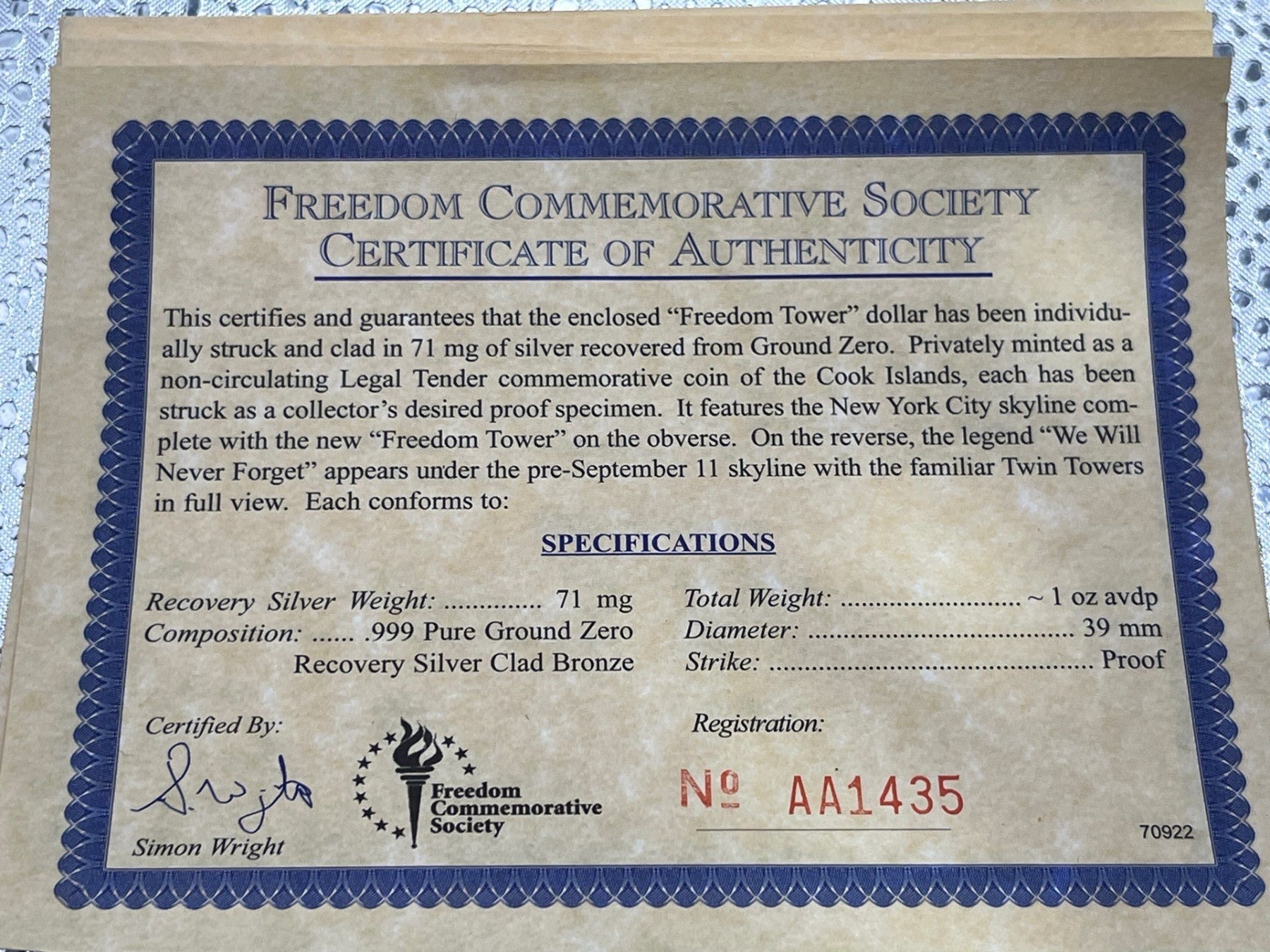 2005 US Freedom Tower Dollar Coins 1 troy oz 99.99% WTC Recovery Silver Clad Bronze