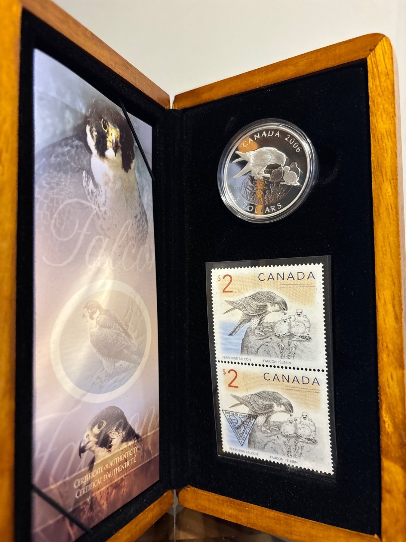 2006 $5 Peregrine Falcon - Pure Silver Coin and Stamp Set