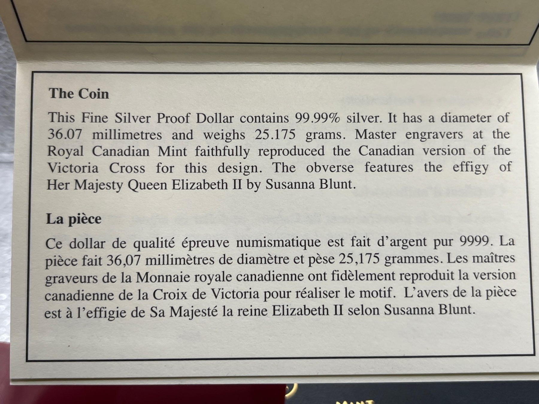 2006 Canadian 150th Anniversary of the Victoria Cross Silver Dollar 25.175g 99.99% Silver