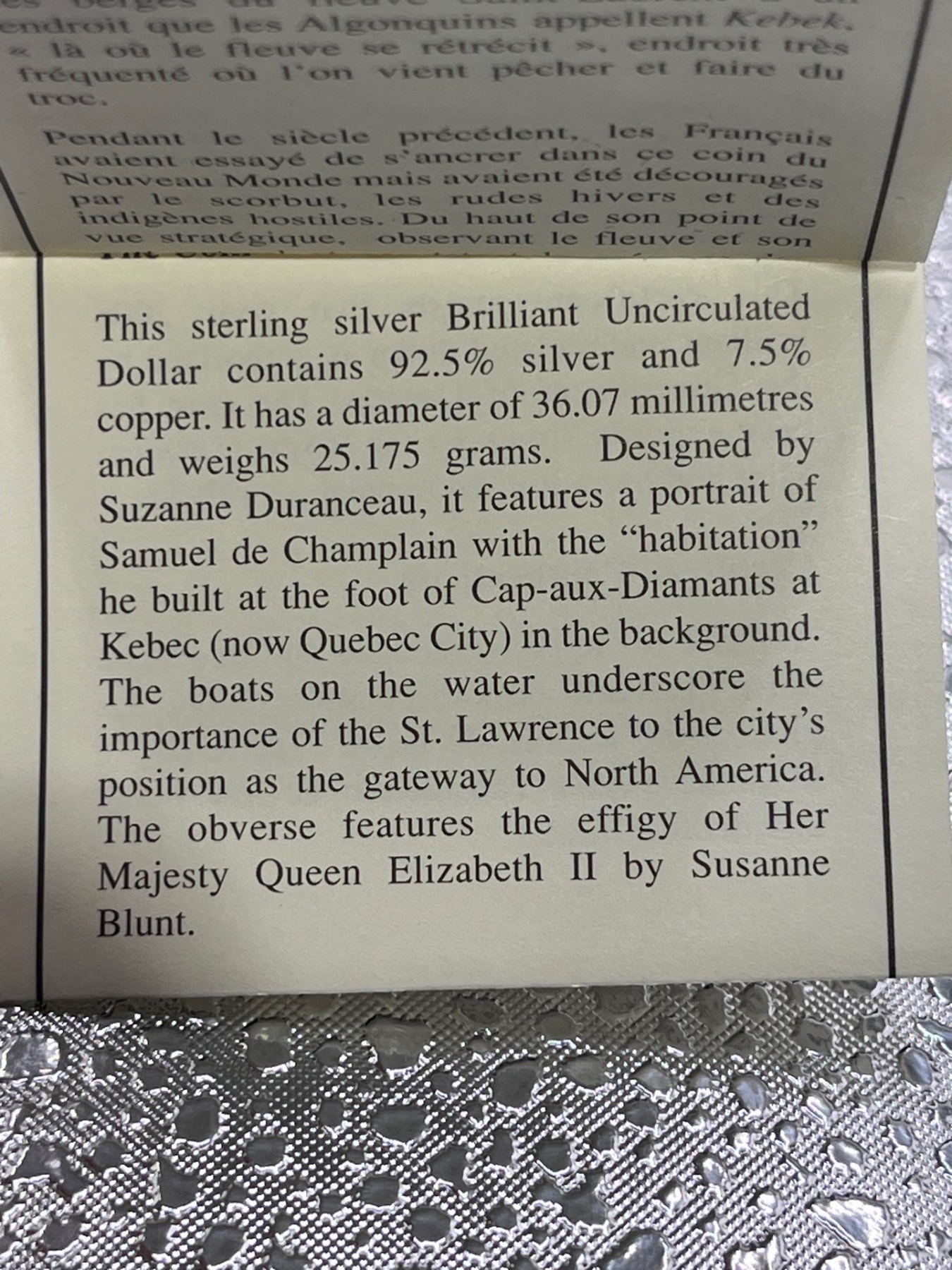 2008 Canadian 400th Anniversary of Quebec City Silver Dollar 25.175g 92.5% Silver