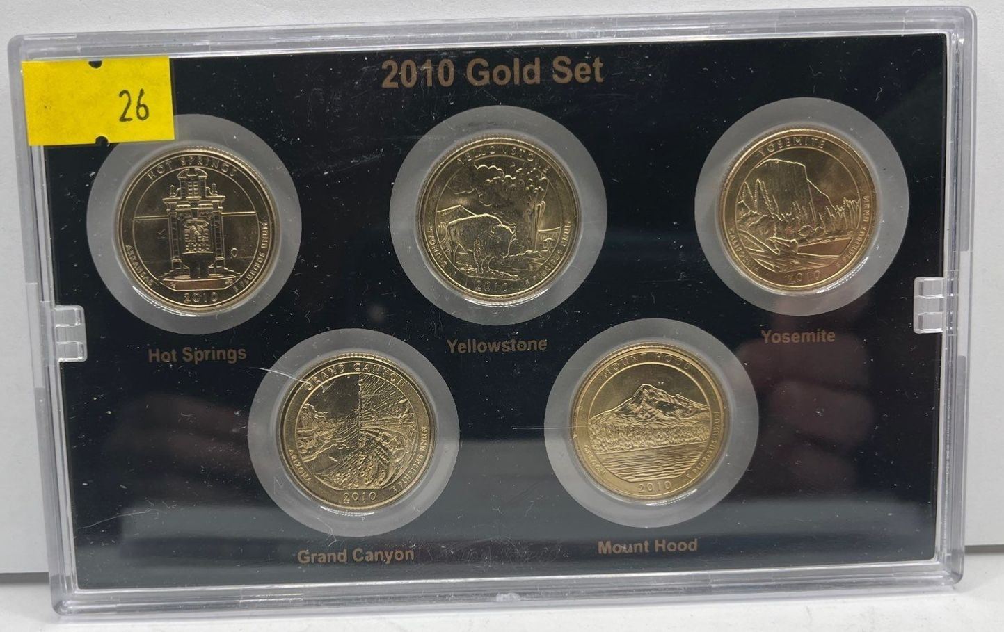 2010 US Quarters Gold Set Hot Springs, Yellowstone, Yosemite, Grand Canyon, and Mount Hood