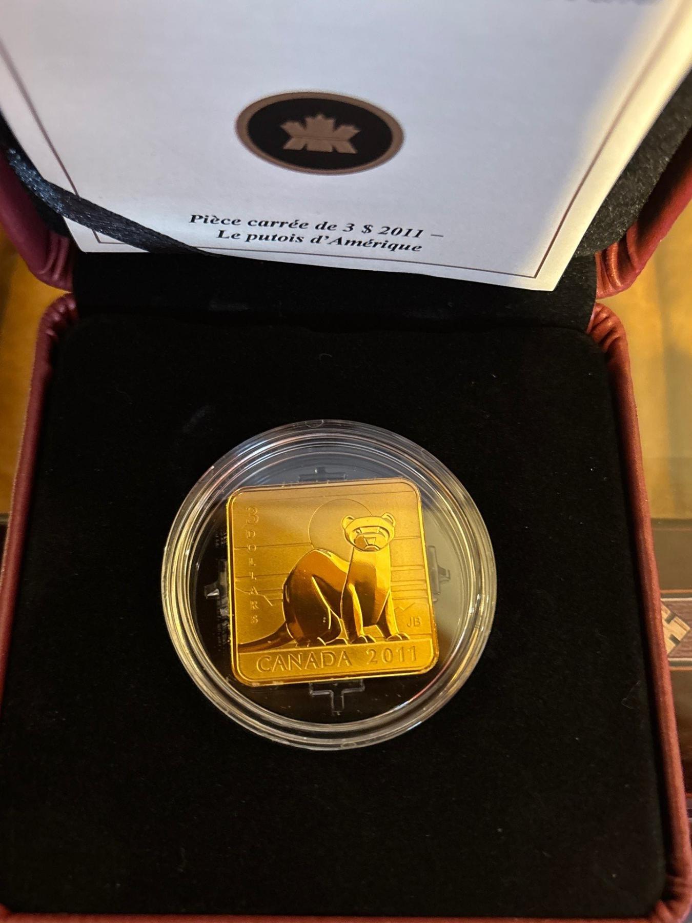 2011 $3 Wildlife Conservation: Black Footed Ferret - Sterling Silver, Gold-Plated Coin