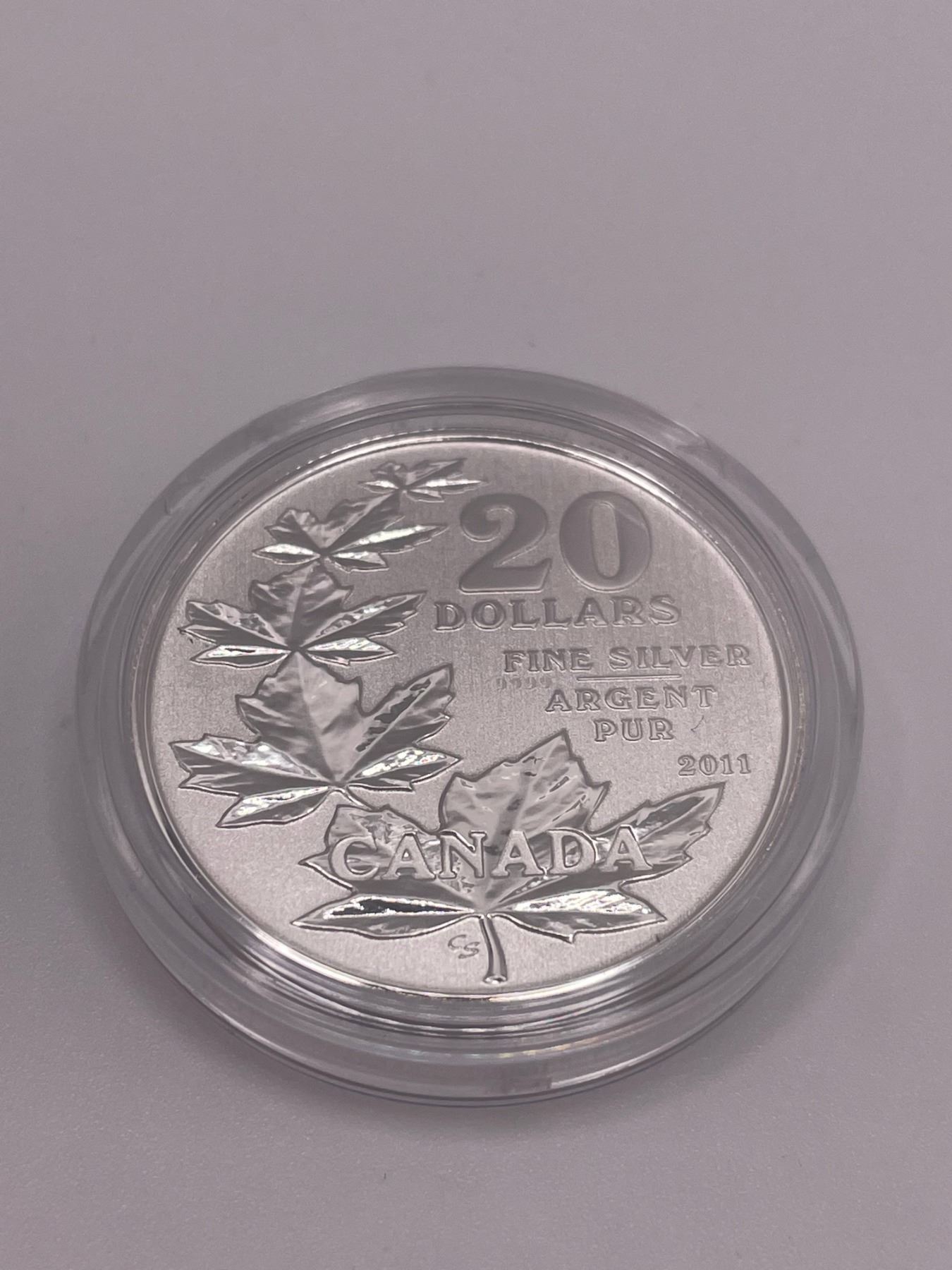 So keep a piece of history with you with this 2011 $20 Five Maples silver coin. Its design comes with image of 5 maple leaves on side and an effigy of Her Majesty Queen Elizabeth II on the other.