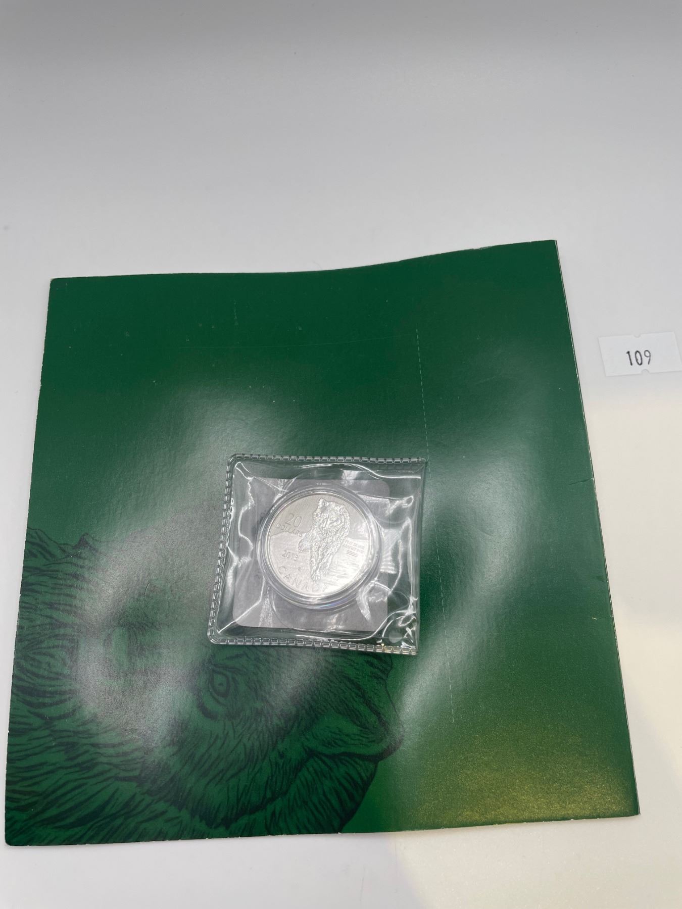 This fine silver coin is certified to be 99.99% pure silver with a diameter of 27 millimetres and a metal weight of 7.96 grams. The reverse image by Canadian artist Glen Loates depicts in dimensional relief a wolf that seems to lope toward the viewer. The large canine's riveting eyes focus daringly on the viewer, its forepaws bent back to meet its hind feet and large head lowered in the animal's characteristic running gait. The wolf's thick fur, pointed ears and short, square muzzle are engraved with stunning realism. Its dense, bushy tail swings out behind it. Its sharp claws help it gain traction on the surface upon which it manoeuvres with exceptional agility. The reverse is engraved with the word 'CANADA,' the bilingual purity standard 'FINE SILVER/ARGENT PUR 9999,' the date '2013,' and the face value of '20 DOLLARS.' The obverse features the effigy of Her Majesty Queen Elizabeth II by Susanna Blunt.