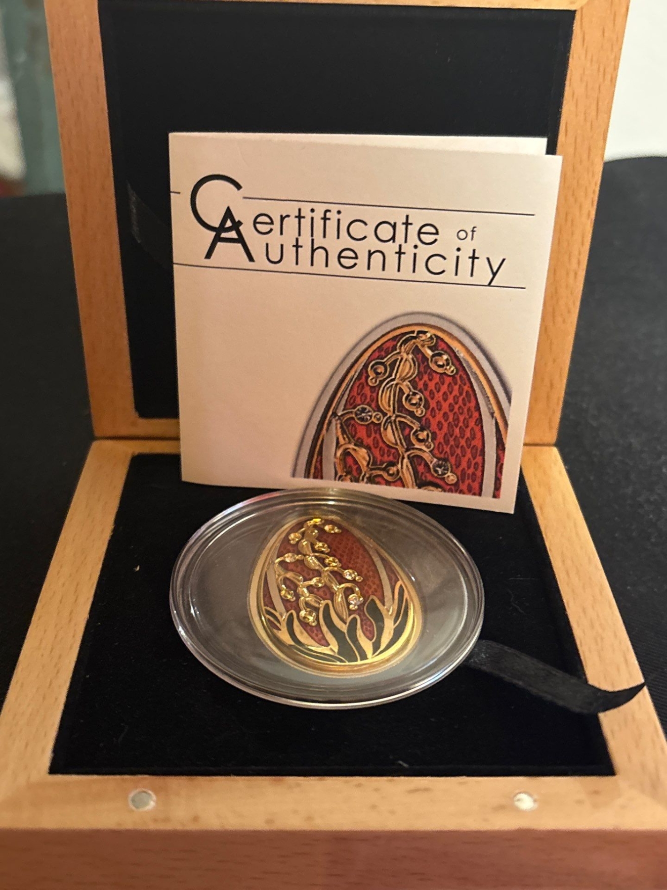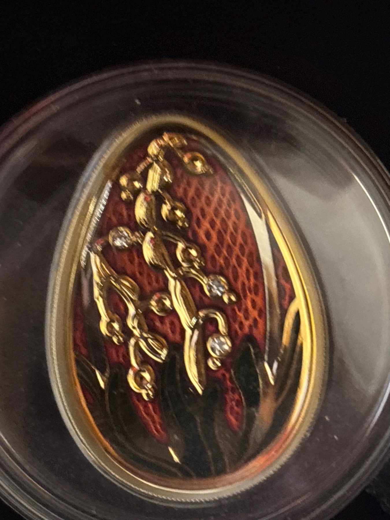 2013 IMPERIAL EGGS BEAUTY IN RED Cloisonne Faberge Silver Coin 5$ Cook Islands