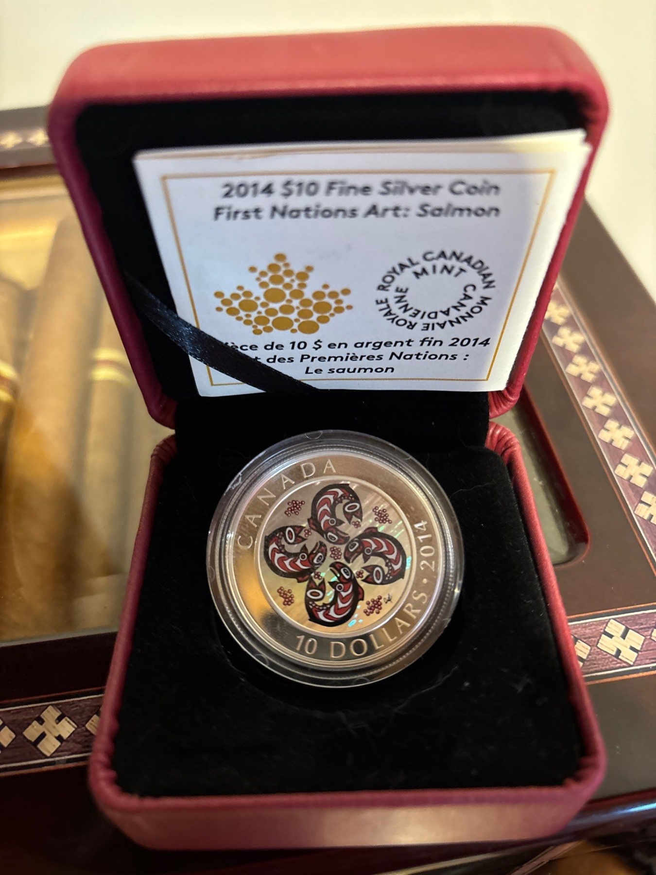 2014 $10 First Nations Art: Salmon - Pure Silver Coin