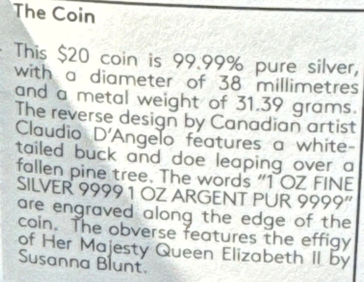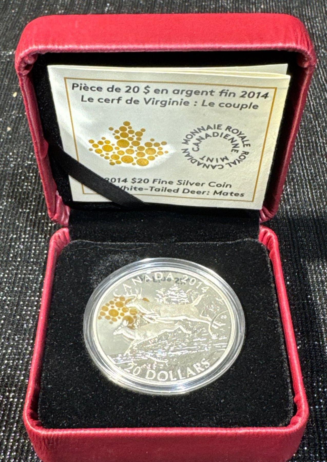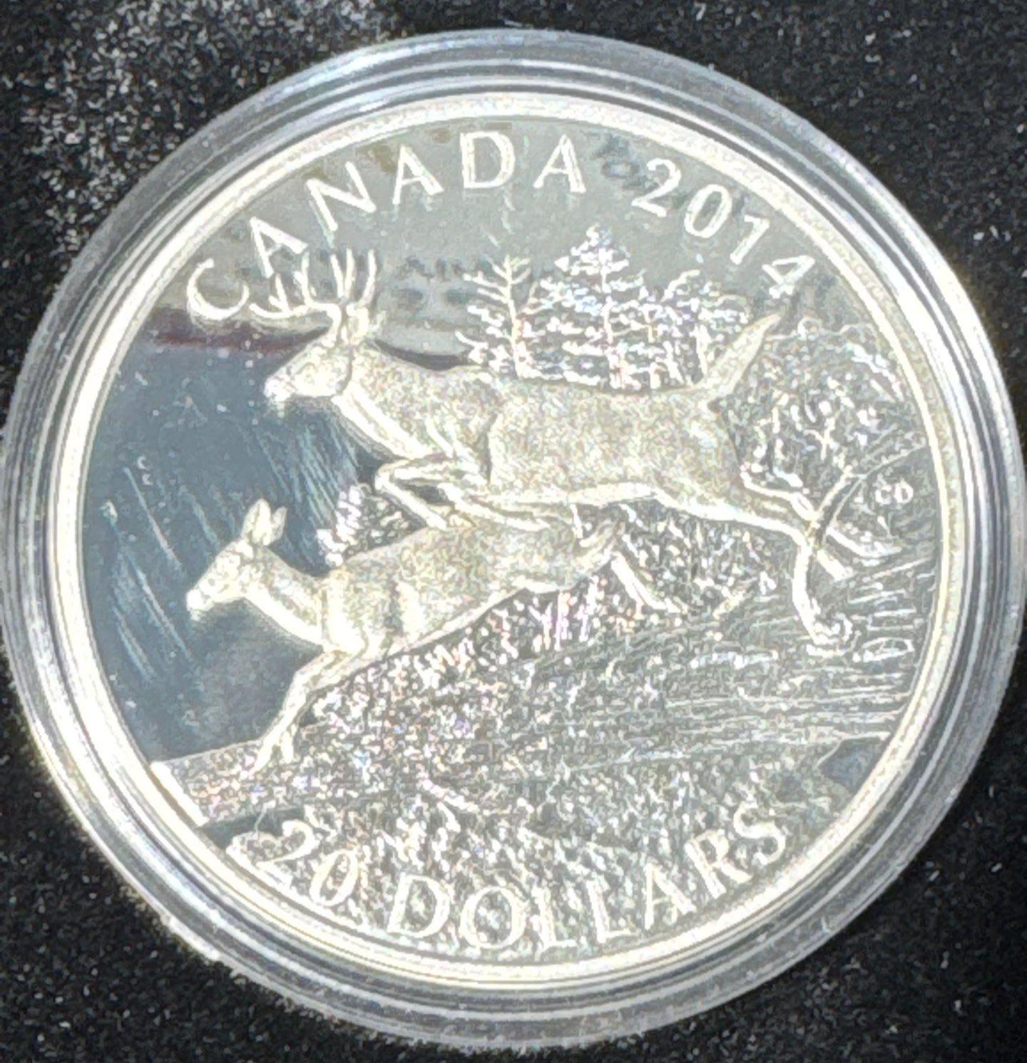 2014 Royal Canadian Mint White-Tailed Deer $20 Fine Silver Coin