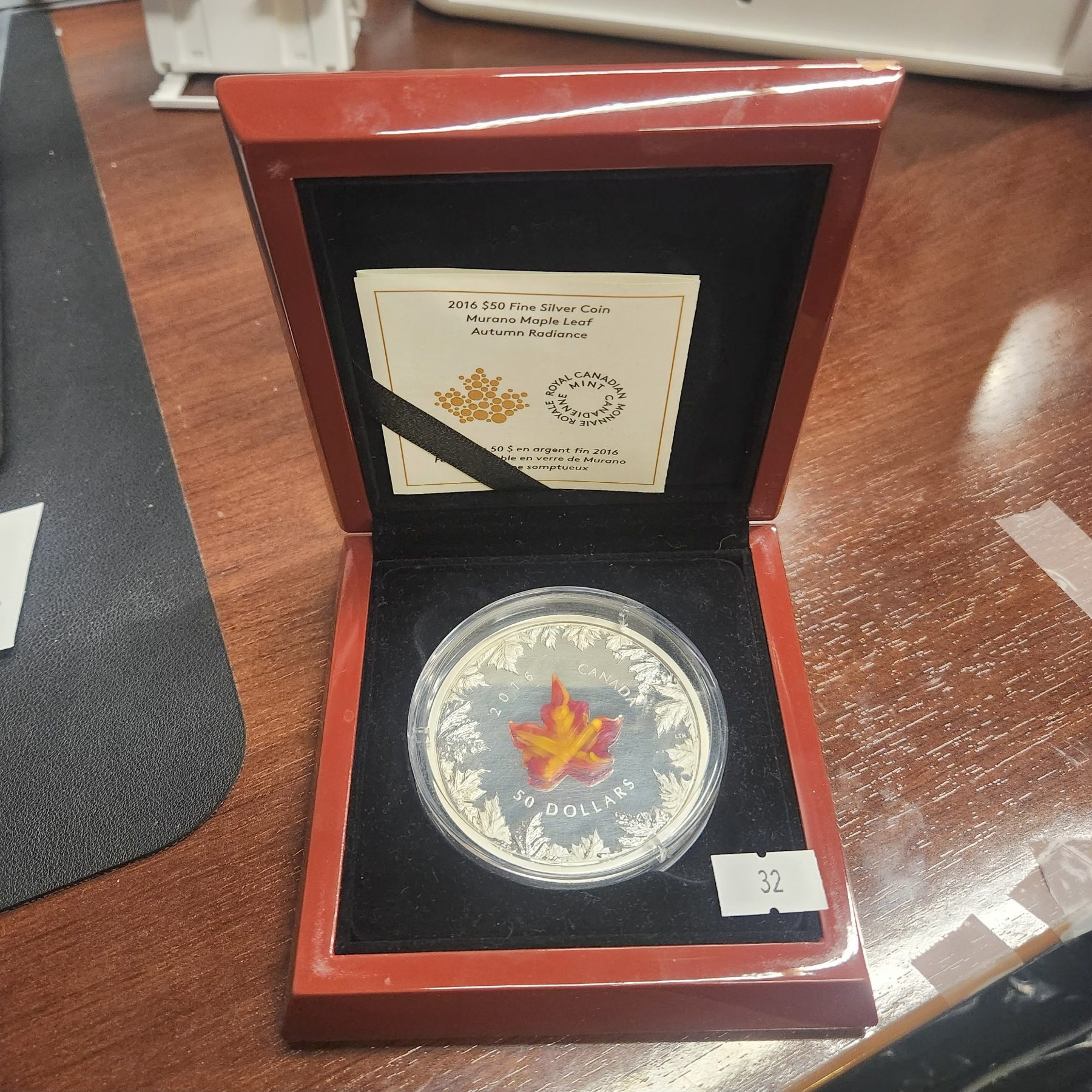 2016 Murano Maple Leaf Autumn Radiance Glass and Proof Silver 99.99% 157.6g