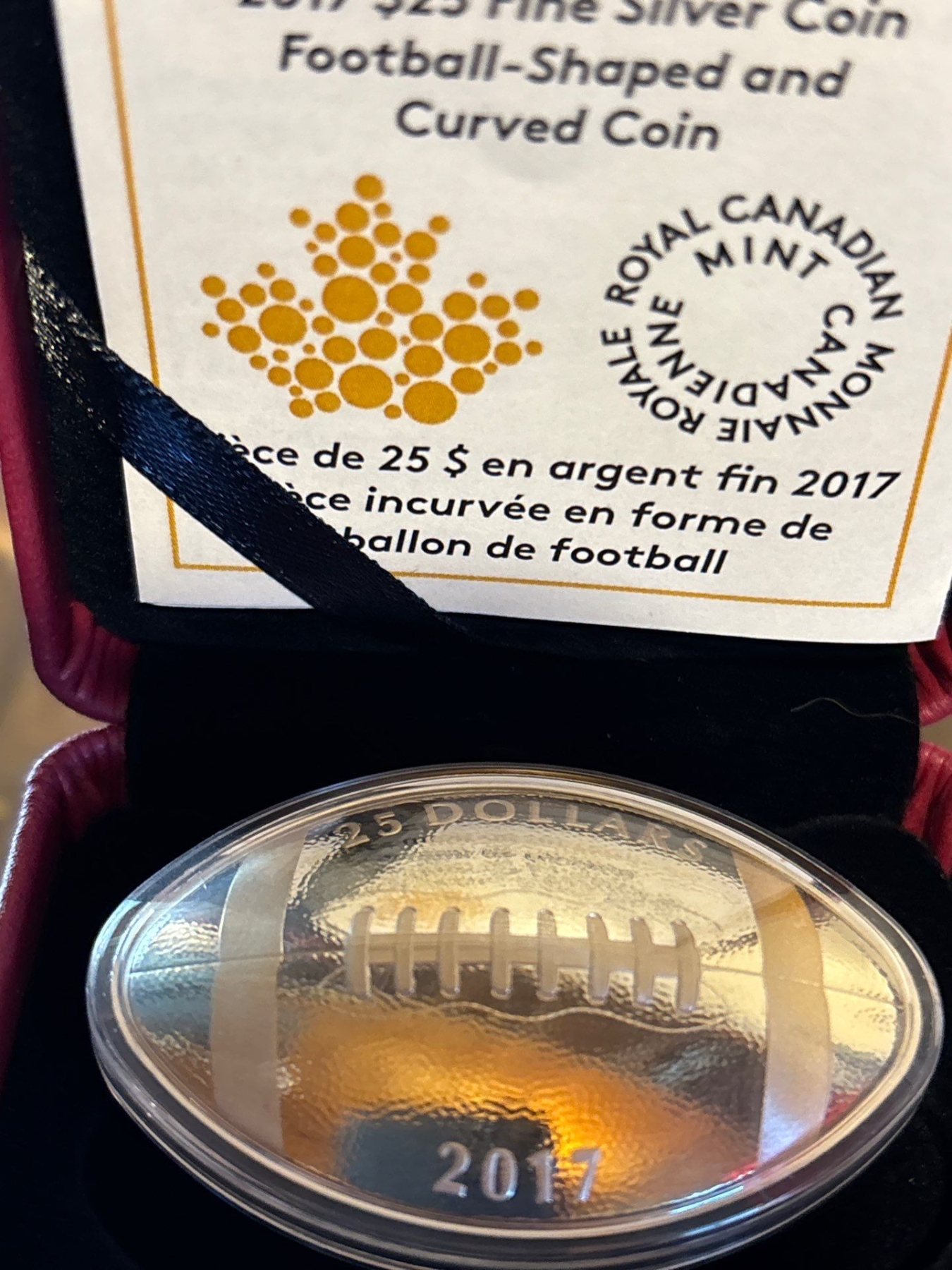 2017 $25 Football-Shaped Curved Pure Silver CoinFEATURES: