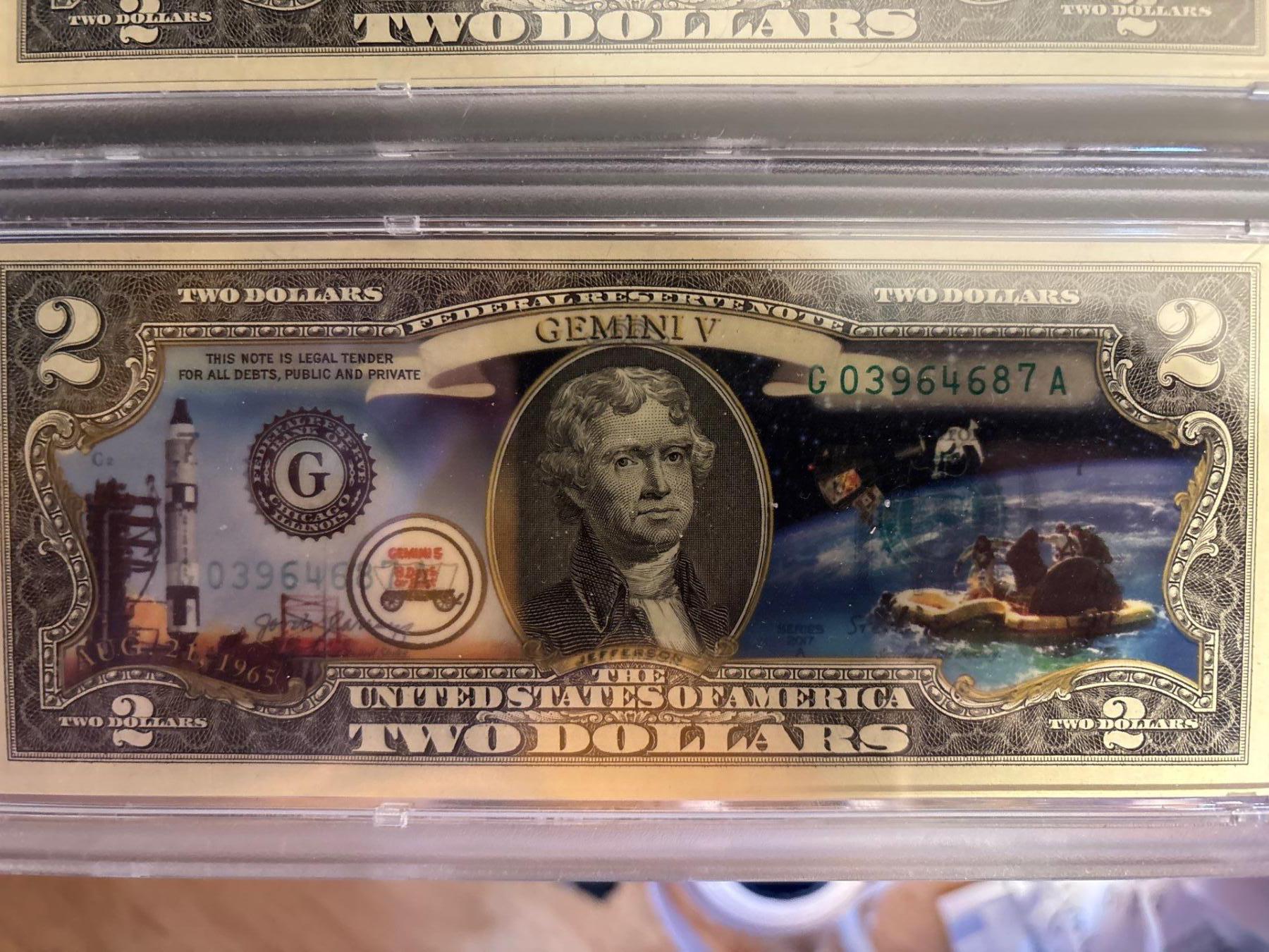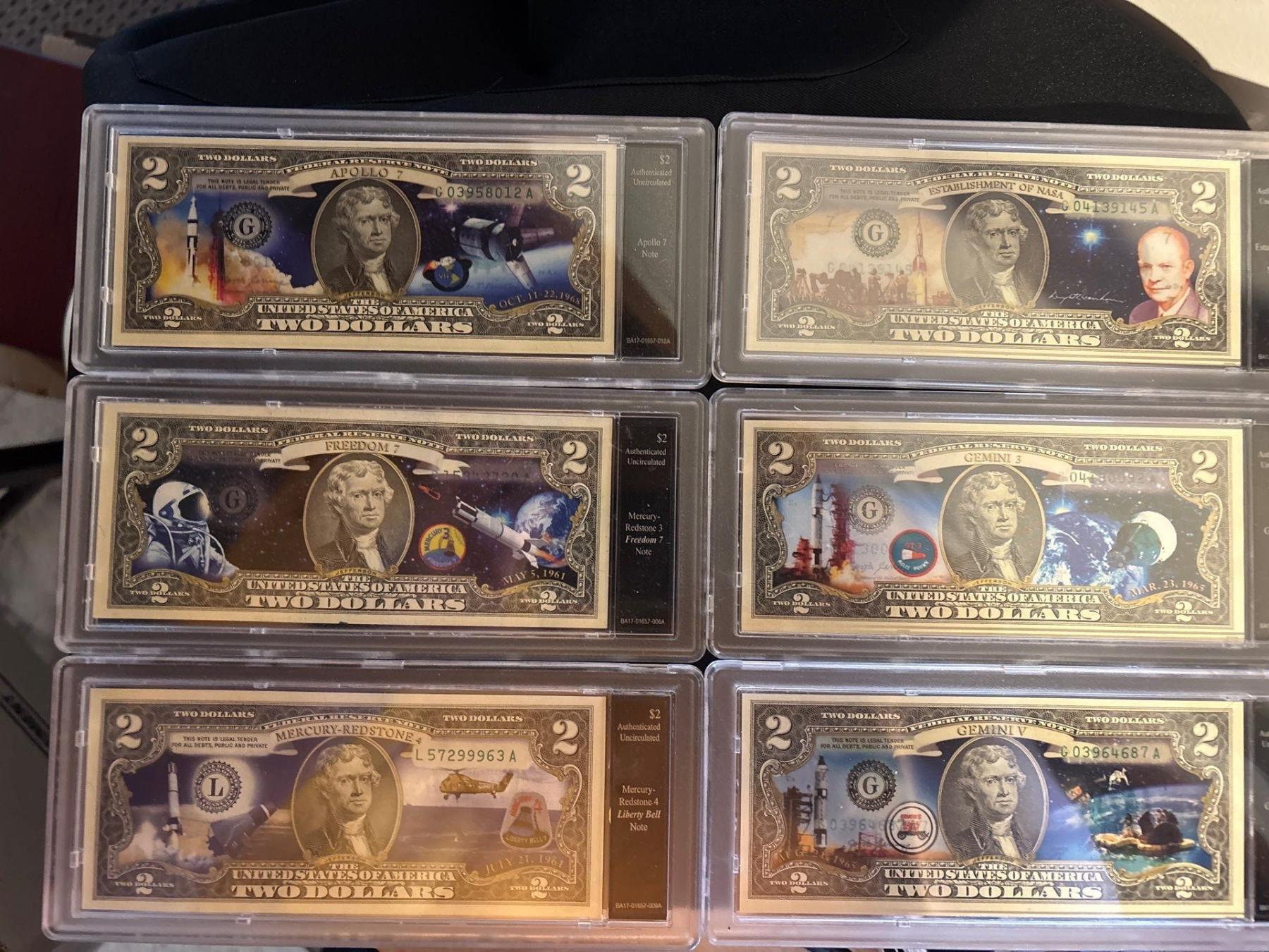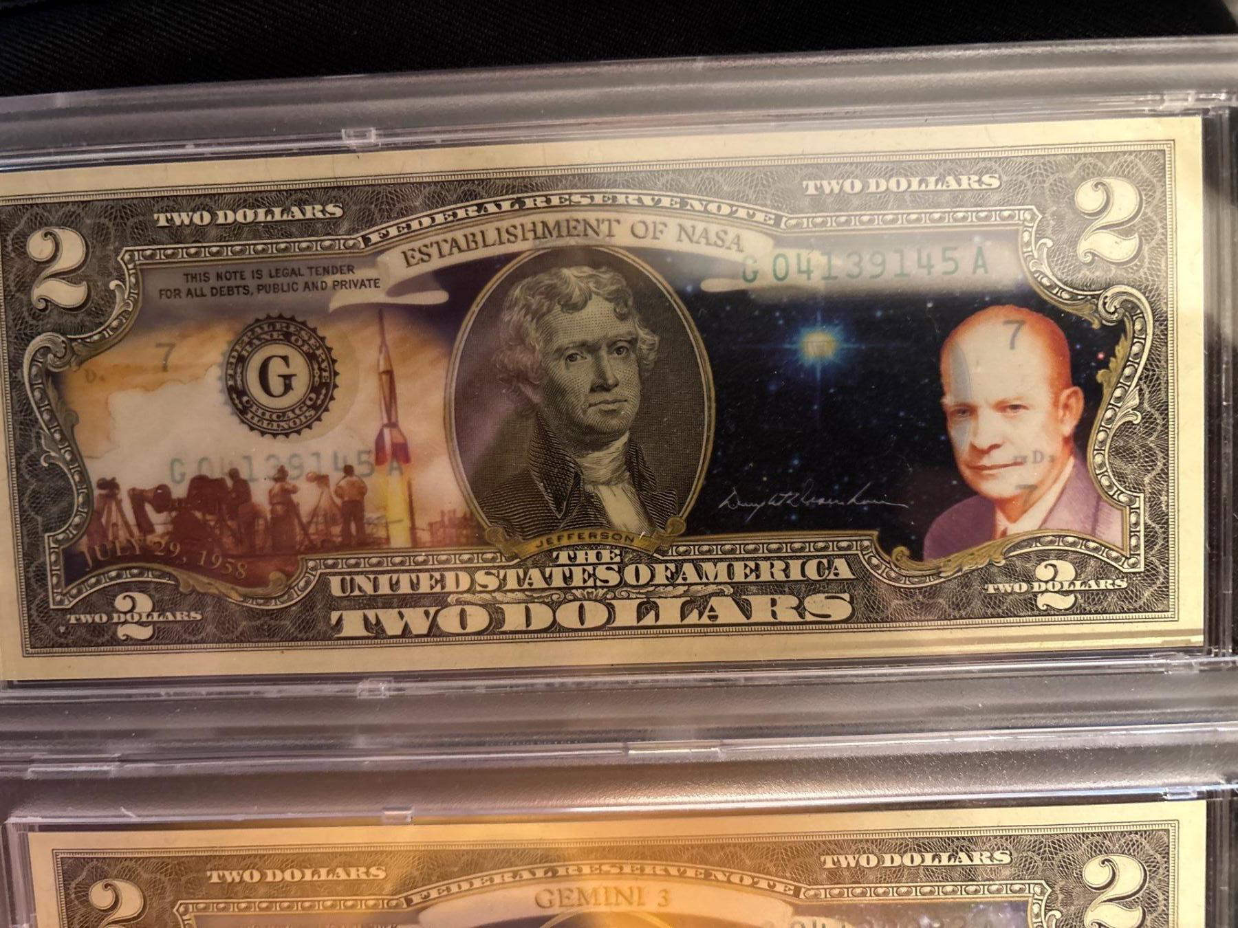 2017 USA Colourized NASA 2$ Notes all Encapsulated in Hard Plastic Protective covers.