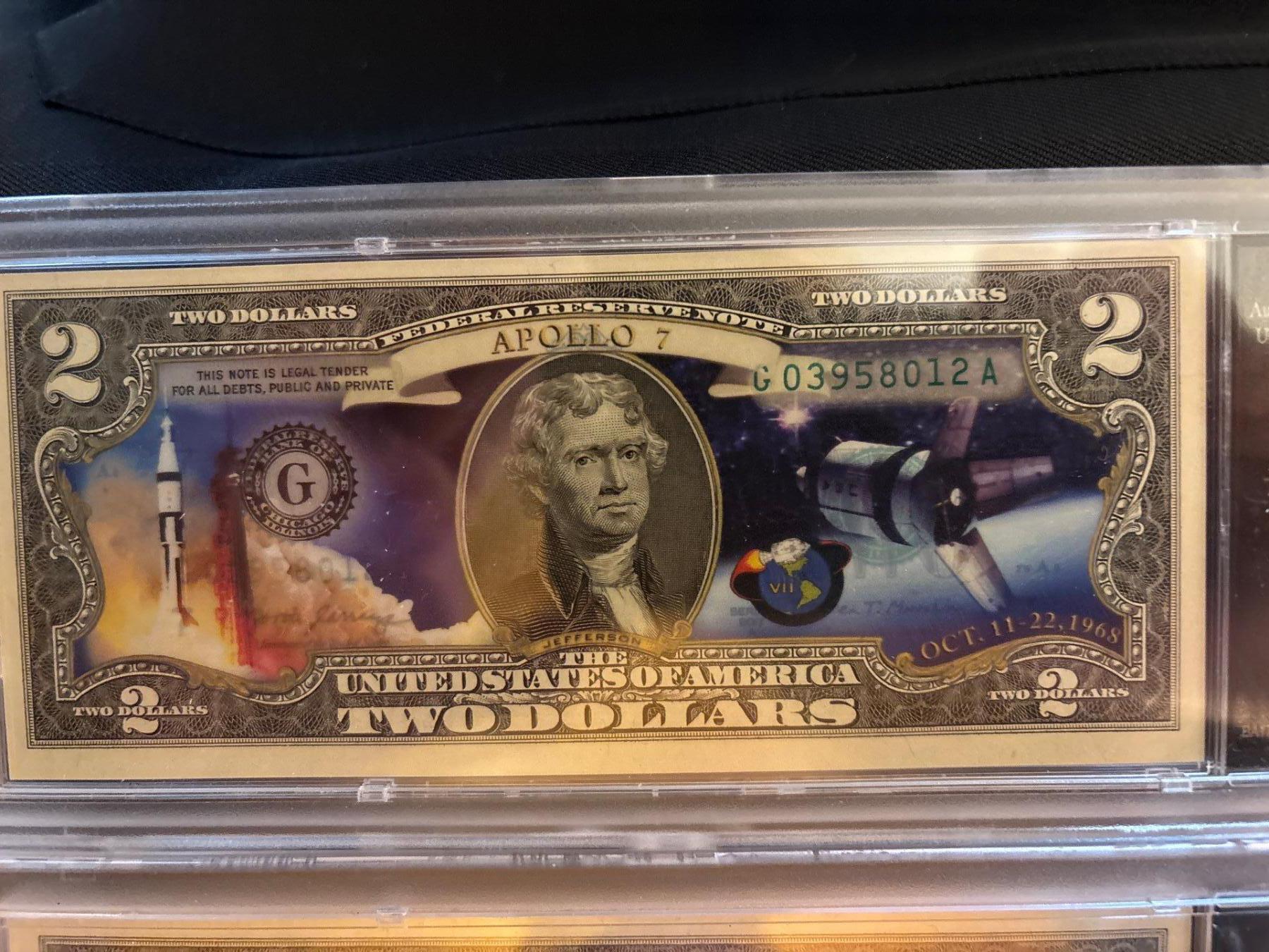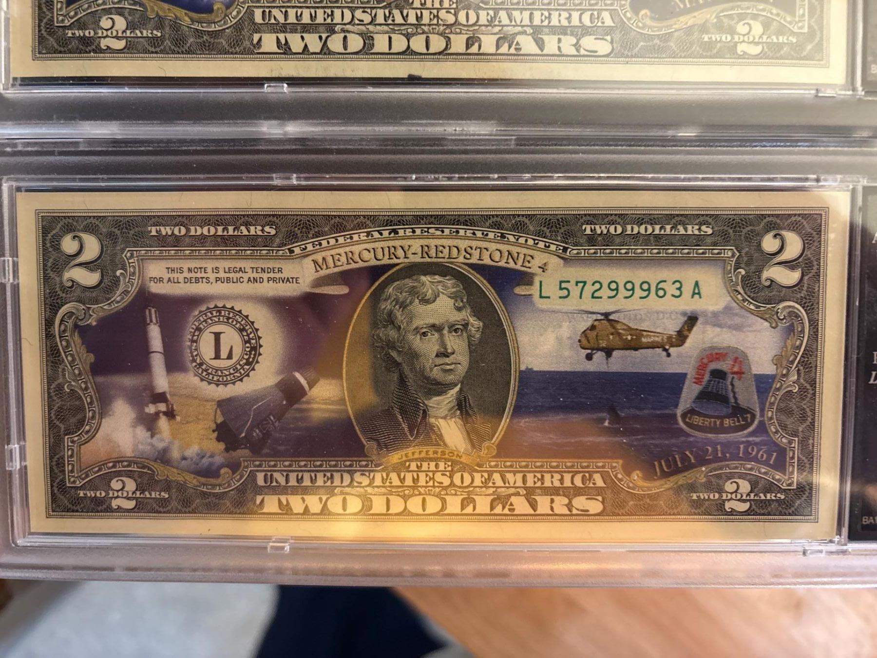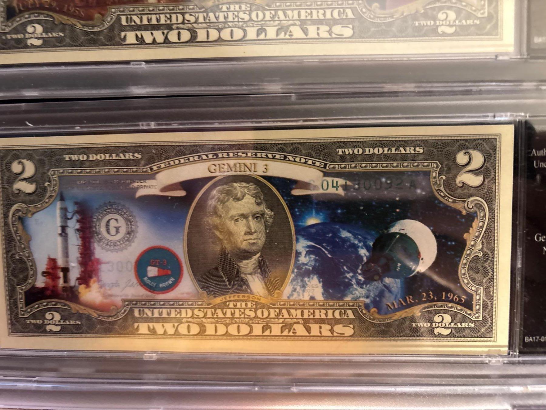 2017 USA Colourized NASA 2$ Notes all Encapsulated in Hard Plastic Protective covers.