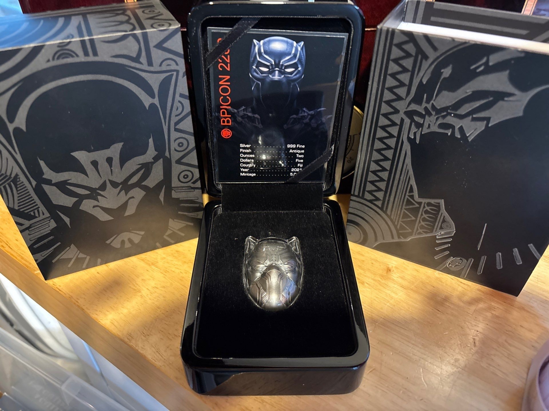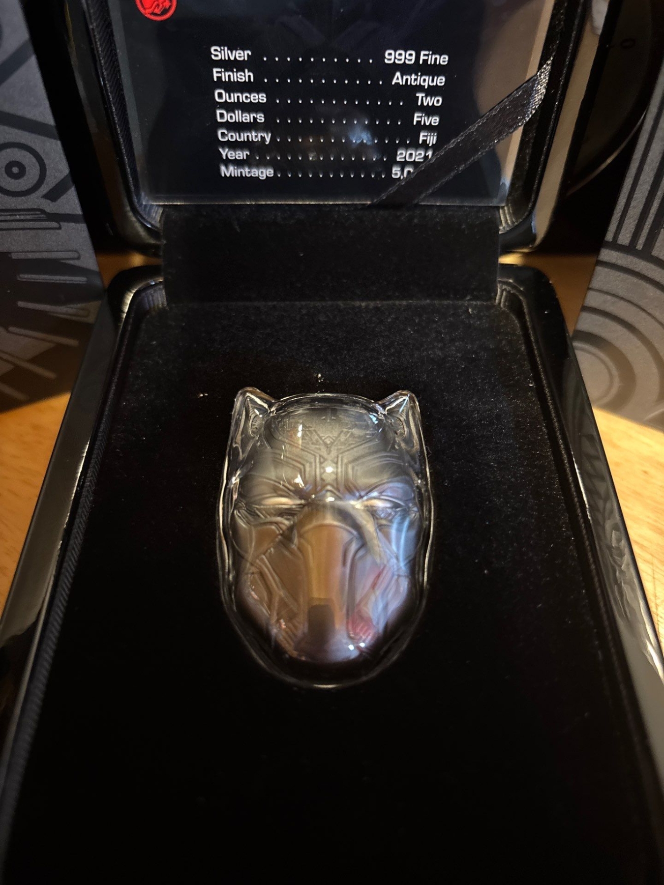 2021 $5 Marvel Black Panther Mask 2oz Silver Antiqued Coin