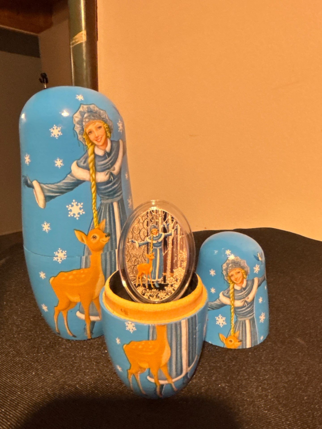 2021 $5 Snow Maiden Matroyshka Nesting Doll - Pure Silver Coin