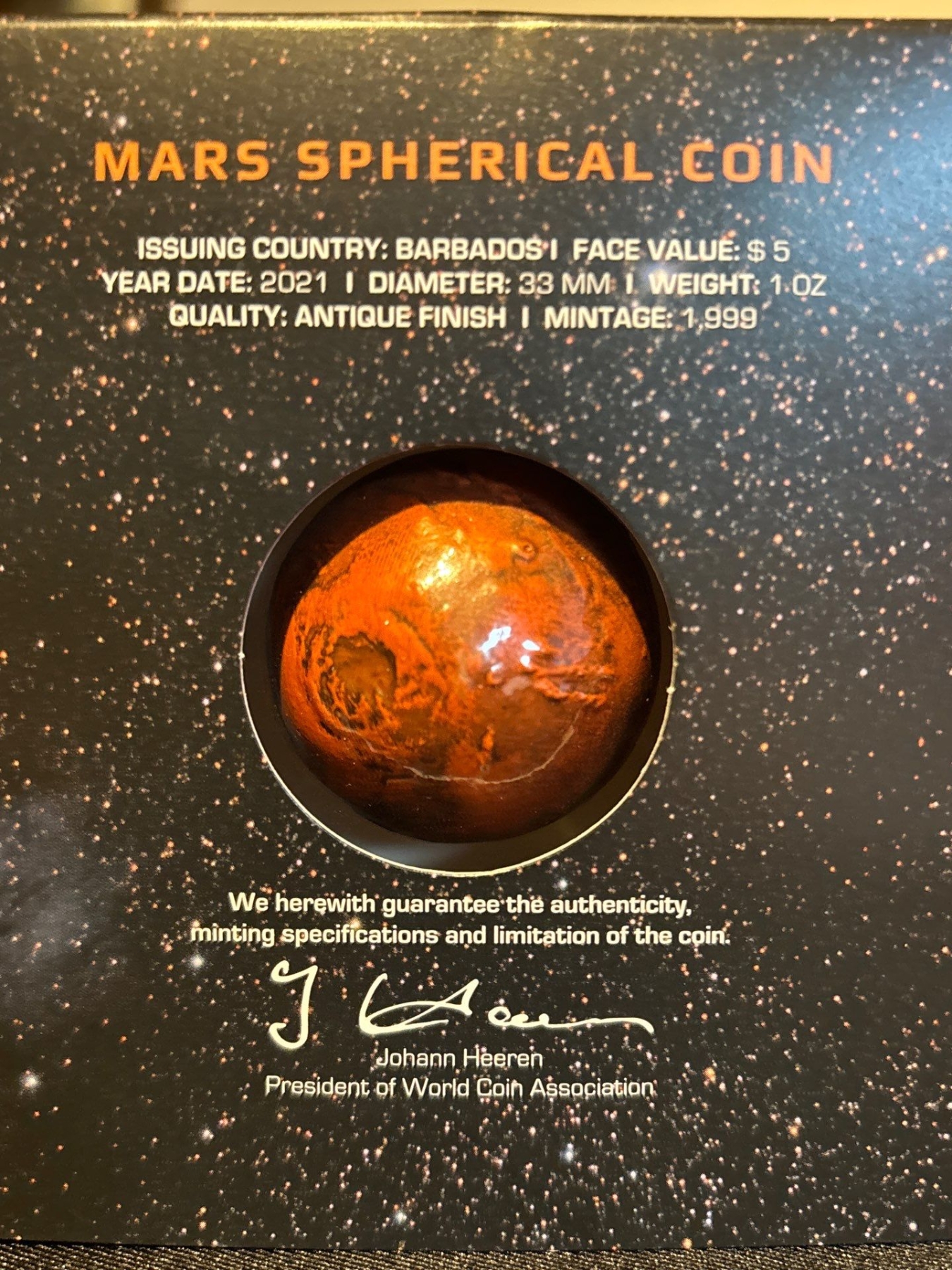 2021 $5 Spherical Mars - Pure Silver Coin $400
