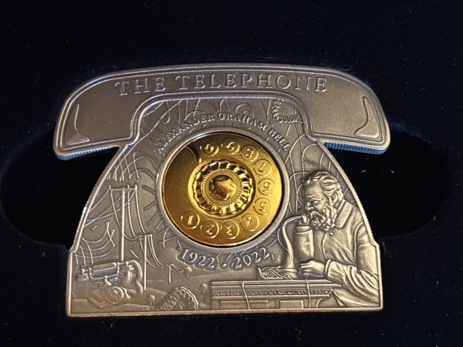 2022 $5 Alexander Graham Bell - Pure Silver Telephone-Shaped Coin with Movable Dial