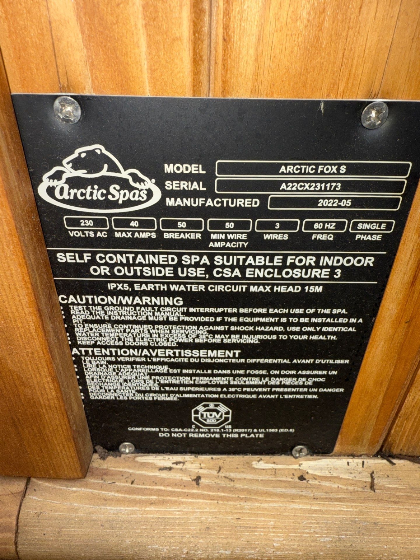 2022 Artic Spas Artic Fox S Self Contained Spa Suitable For Indoor Or Outdoor Use- Hot Tub Needs Professional Clean & New Cover