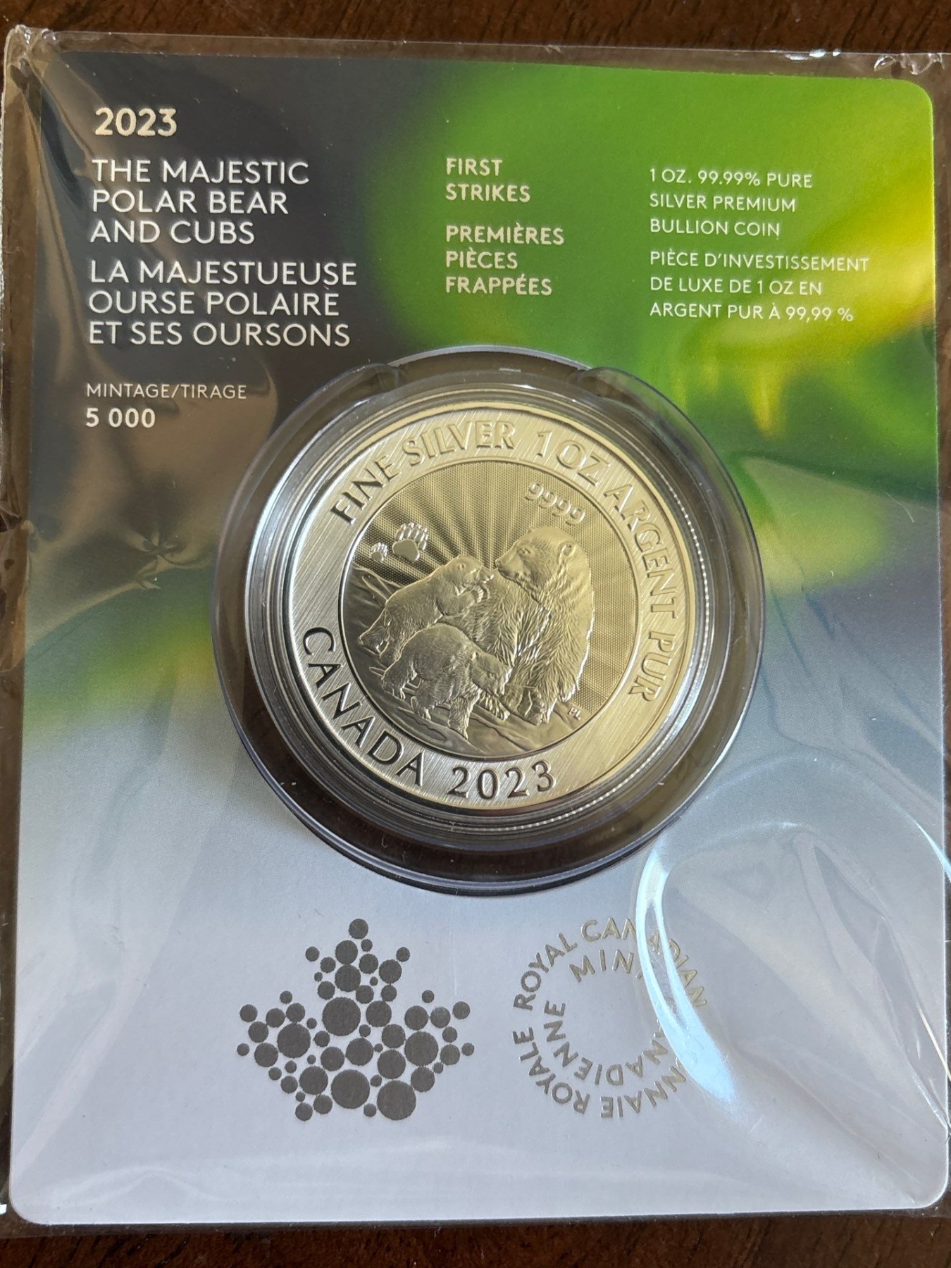 2023 $5 First Strikes: Majestic Polar Bear and Cubs - Pure Silver Coin